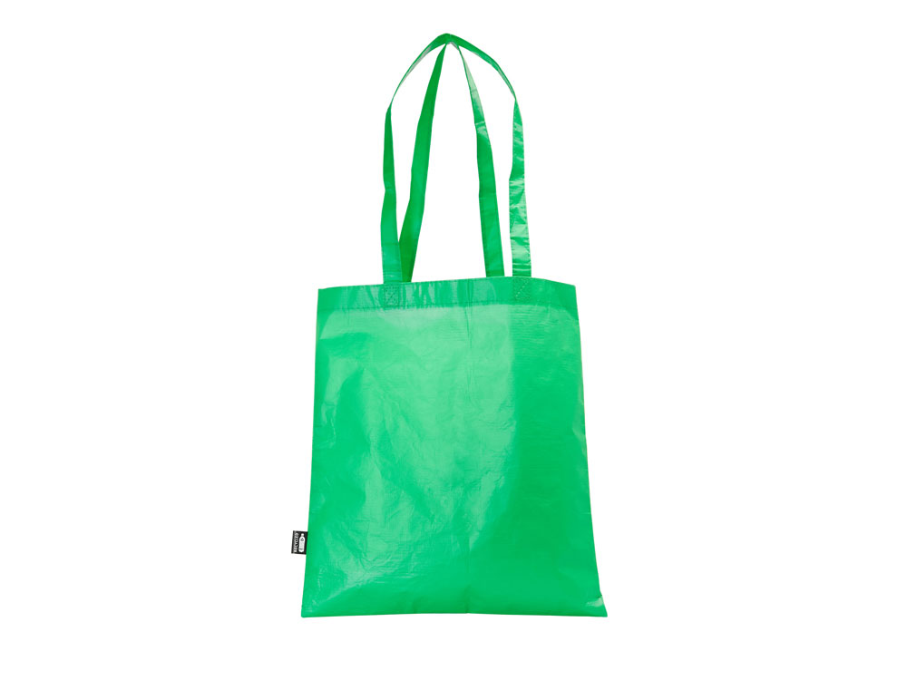 Многоразовая сумка с матовой ламинированной отделкой. Изготовлена из прочного RPET с усиленными ручками.