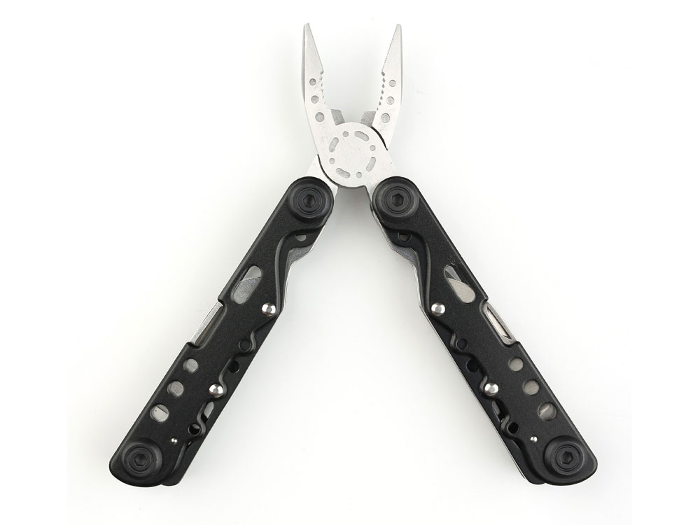 МНОГОФУНКЦИОНАЛЬНЫЙ ИНСТРУМЕНТ STINGER С НАБОРОМ ИЗ 13 ФУНКЦИЙ: 1. Острогубцы 2. Пассатижи 3. Кусачки 4. Лезвие большое плоское 5. Лезвие с серрейторной кромкой 6. Пила по дереву и металлу 7. Напильник по дереву и металлу 8. Отвёртка крестовая 9. Отвёртка шлицевая большая 10. Отвёртка шлицевая малая 11. Инструмент для снятия изоляции 12. Открывалка для бутылок 13. Консервный нож ХАРАКТЕРИСТИКИ: Материал инструментов: нержавеющая сталь 2Cr13 Материал рукояти: нержавеющая сталь Длина: 105 мм Ширина: 40 мм Вес: 276 г В комплекте: чехол из синтетического материала Упаковка: складная картонная коробка