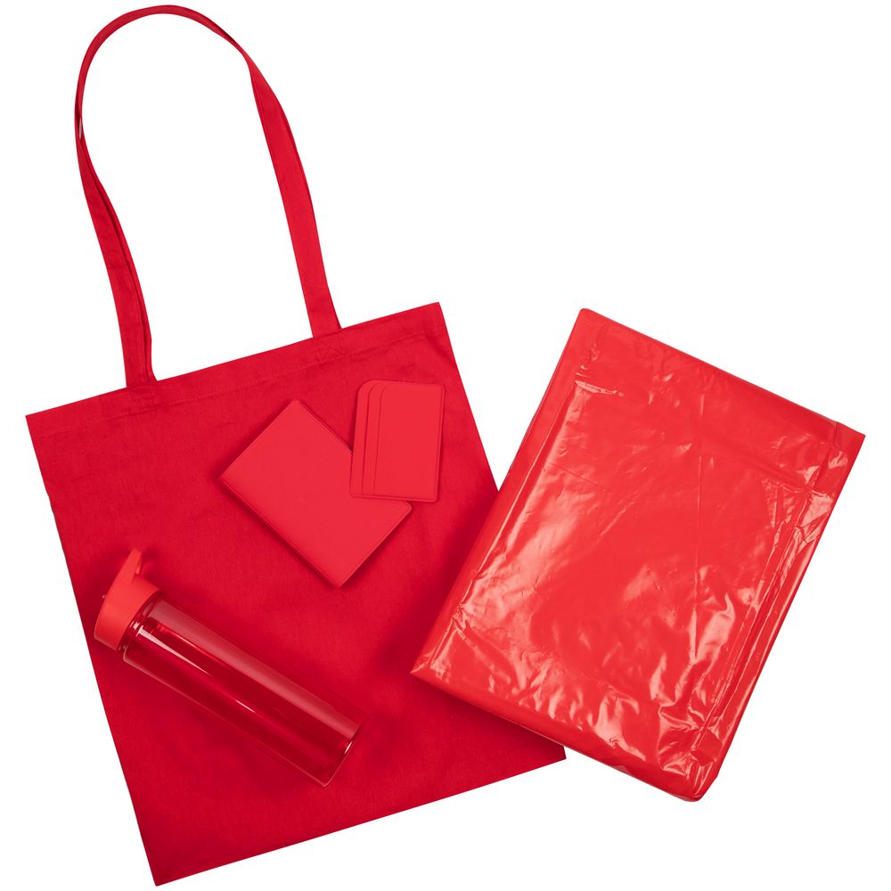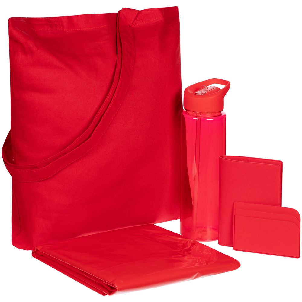 | Материал | обложка для паспорта, чехол для карточек - искусственная кожа; бутылка - пластик; сумка - хлопок 100%, плотность 105 г/м²; дождевик - полиэтилен |