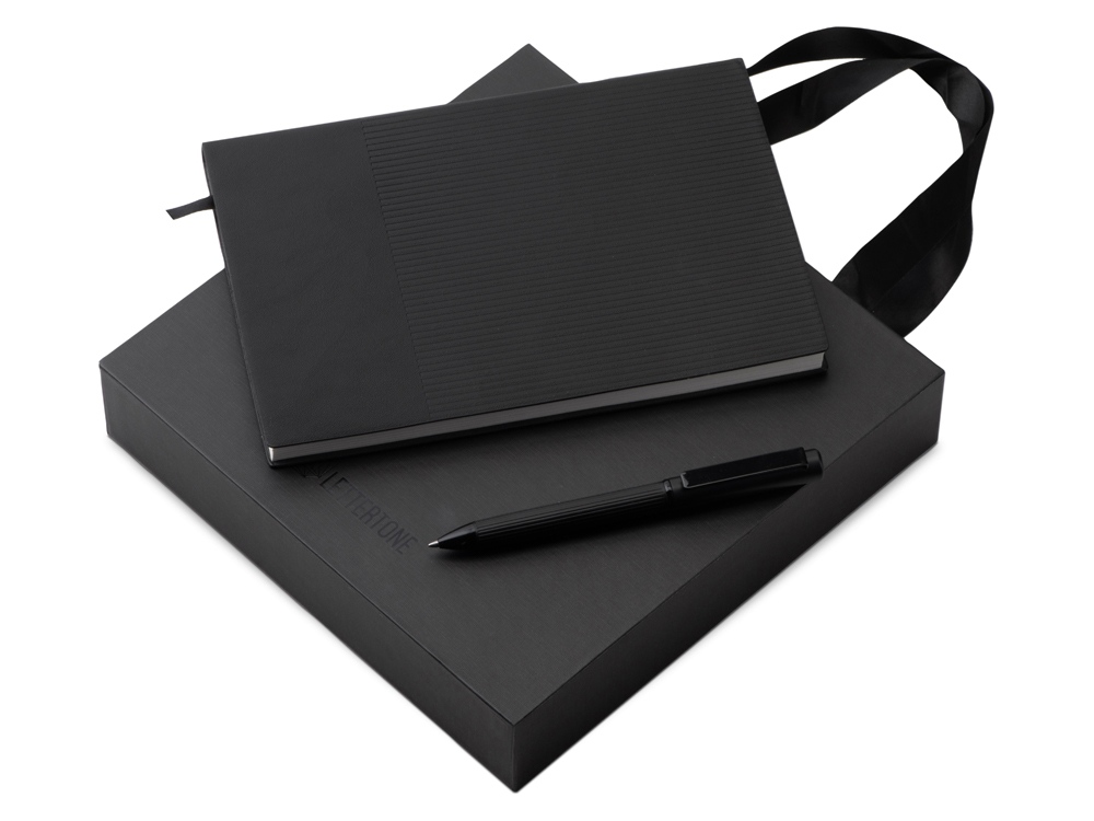 Готовый подарочный офисный набор - это полезный корпоративный подарок, который можно брендировать разными способами. Необычная коробка в форме подарочного пакета добавит подарку эффектности и оригинальности. В подарочный набор входят: - блокнот формата А5 на 80 листов. Бумага плотностью 70г/м2 имеет сертификат ответственного лесопользования FSC; - шариковая ручка с металлическим корпусом, пишущим узлом Premec и мягкими немецкими чернилами Dokumental. Цвет чернил синий; - подарочная коробка с ручками-лентами, напоминающая подарочный пакет. Все предметы набора выполнены в едином цвете