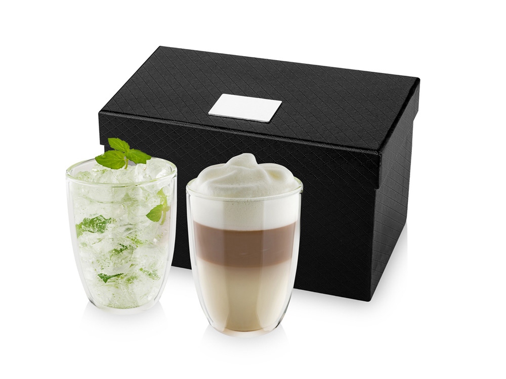 Набор Boda из 2-х предметов. Набор из двух стаканов 300 мл с двойными стенками. Идеальны для подачи кофе латте макьято, холодного чая или других горячих или холодных напитков. Упакован в подарочную коробку. Шильд для лого в комплекте. Стекло.