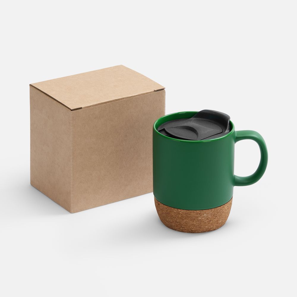 • Кружка с пробковой подставкой Corky Walk, зеленая