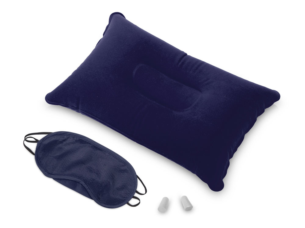 Путешествуйте с комфортом вместе с дорожным набором Cloud, который включает в себя подушку из ПВХ прямоугольной формы, повязку на глаза и полиуретановые беруши. Также в комплекте есть чехол на завязках для хранения и удобной транспортировки.