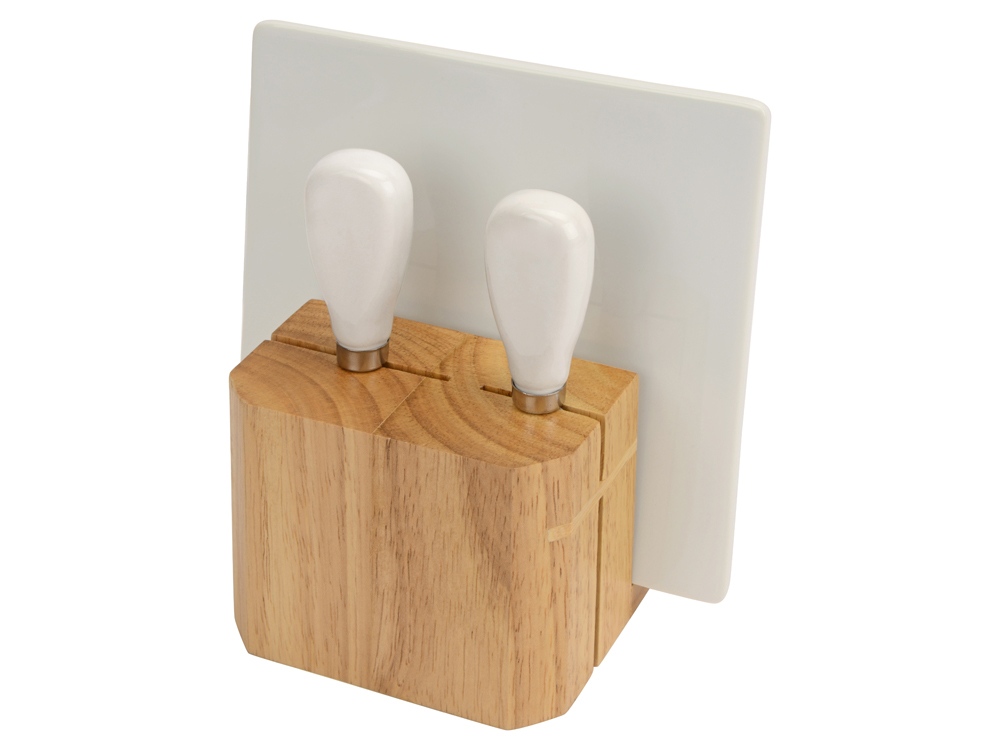 Набор для сыра Cheese Break предназначен для нарезки и подачи разных сортов сыра и любых других закусок. Ножи имеют белые керамические рукоятки, а доска полностью выполнена из керамики. Предметы устанавливаются в удобную деревянную подставку, в которой их можно хранить после использования. В комплект входит: - листовидный нож для твердых сортов сыра, - нож-лопатка для мягких сортов сыра, - керамическая доска для подачи закусок, - деревянная подставка для всех предметов.