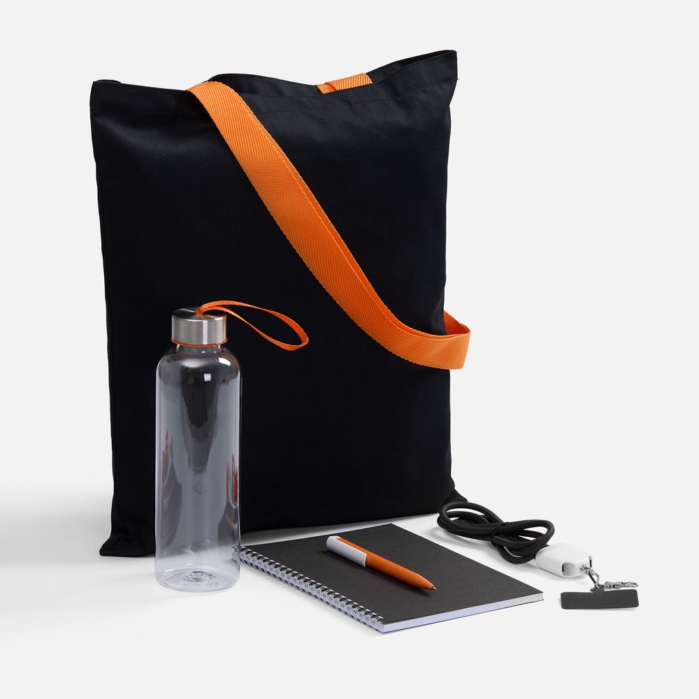 • Холщовая сумка BrighTone, черная с оранжевыми ручками