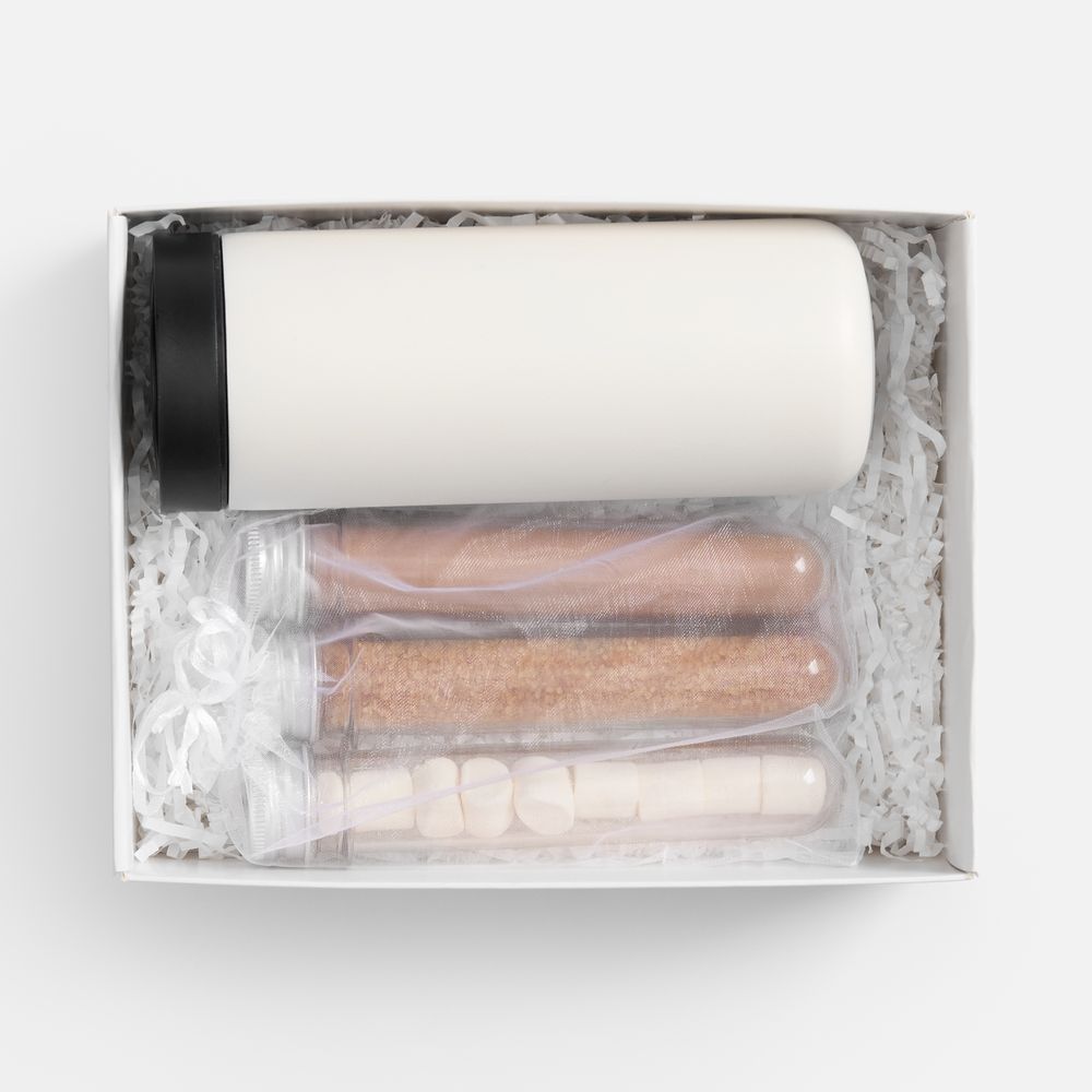 Материал коробка - картон; носки - полиэстер 100%; пробирки - пластик; термостакан - нержавеющая сталь, пластик