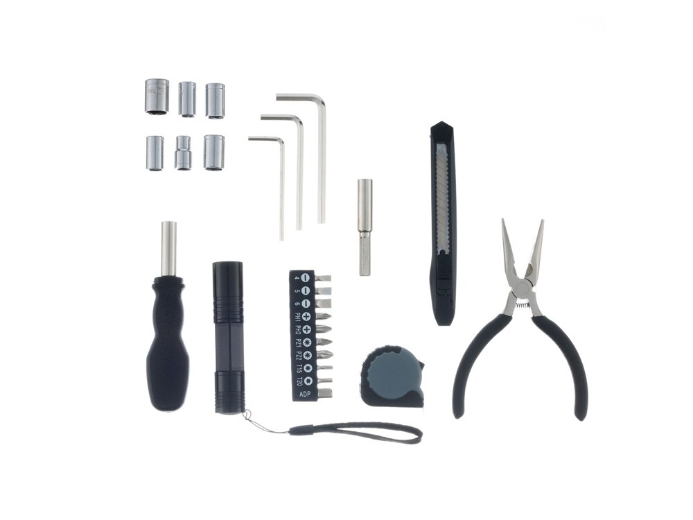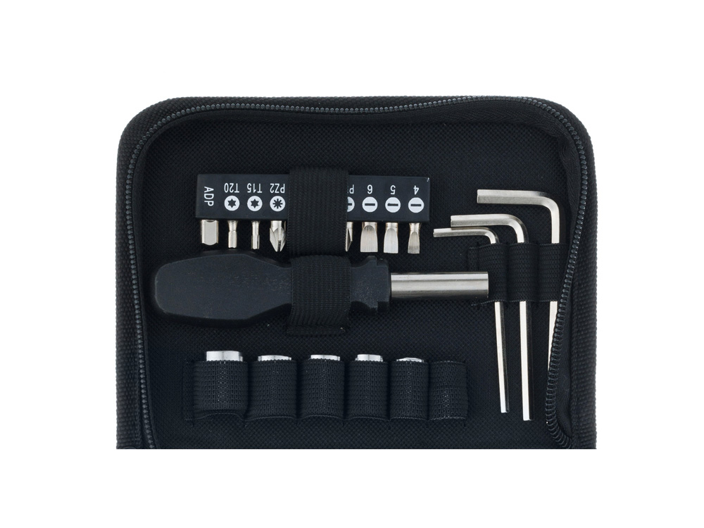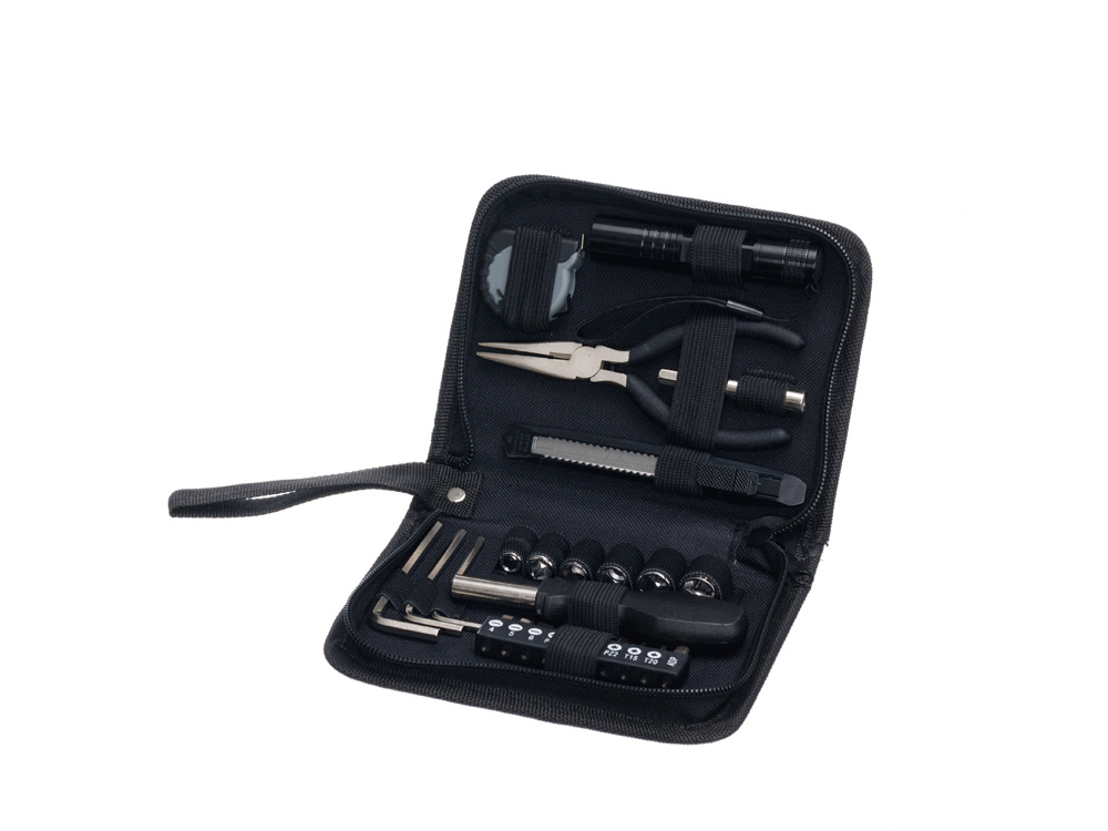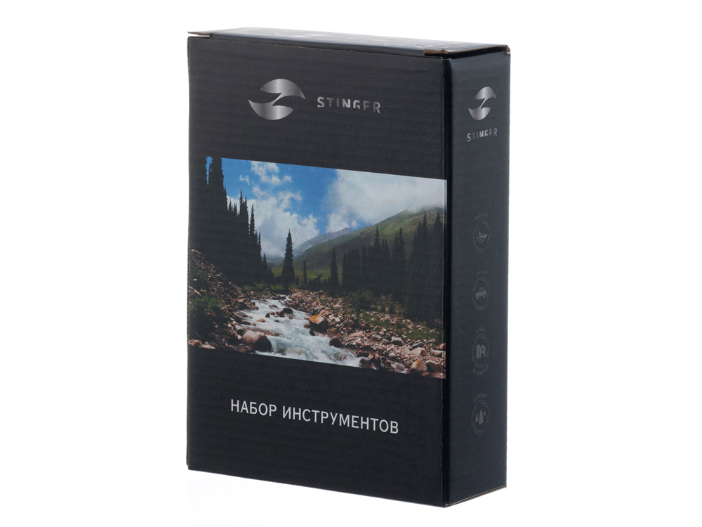 НАБОР ИНСТРУМЕНТОВ STINGER, 25 ПРЕДМЕТОВ Набор инструментов STINGER W0109 на 25 предметов придётся по вкусу всем тем, кто привык всё делать своими руками. С таким комплектом можно без труда произвести практически любой мелкий бытовой ремонт. Все предметы надёжно закреплены в прочном нейлоновом чехле. Этот компактный набор можно хранить в тумбочке, на полке, в шкафу или бардачке машины. Стальные рабочие части инструментов отличаются повышенной прочностью, рукоятки выполнены из износостойкого карбона. Для удобства чехол дополнен матерчатой ручкой для переноски. В КОМПЛЕКТЕ: 1. Рукоятка для бит - 1 шт. 2. Бита - 9 шт. 3. Адаптер для шестигранных головок - 1 шт. 4. Удлинитель для шестигранных головок – 1 шт. 5. Головка шестигранная (6/7/8/9/10/12 мм) – 6 шт. 6. Нож канцелярский – 1 шт. 7. Ключ шестигранный – 3 шт. 8. Плоскогубцы – 1 шт. 9. Рулетка измерительная (1 м) – 1 шт. 10. Фонарик – 1 шт. ХАРАКТЕРИСТИКИ: Материал: углеродистая сталь, углепластик (карбон) Размер: 172 х 125 х 42 мм