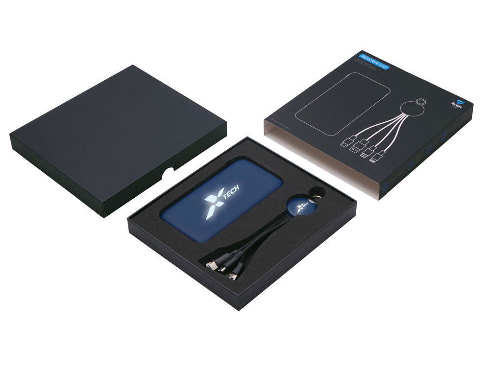 Практичный и стильный набор для зарядки в дороге: внешний аккумулятор на 10 000 мА·ч и универсальный кабель с тремя разъёмами (Micro USB, Lightning, USB Type-C). Оба элемента комплекта оснащены подсветкой логотипа — ваш бренд всегда на виду, даже в темноте. Повербанк обеспечивает 2–3 полных заряда смартфона и оснащён двумя выходами (USB-A и USB-C) для одновременной зарядки двух устройств. Поставляется в прочной подарочной коробке с шубером — идеальное решение для корпоративных подарков. • Подсветка логотипа на повербанке и кабеле — ваш бренд заметен даже в темноте. • Универсальный кабель 3 в 1 — подходит для всех популярных устройств. • Ёмкость 10 000 мА·ч — хватает на 2–3 полных заряда смартфона. • Два выхода (USB-A + USB-C) — заряжайте два устройства одновременно. • Премиальная упаковка — качественная коробка с шубером и мягким EVA ложементом.