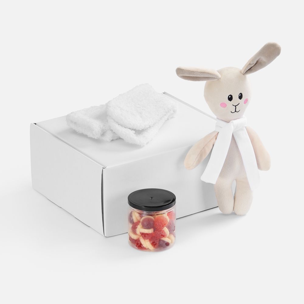 | Материал | коробка - микрогофрокартон; носки - полиэстер 100%; игрушка - велюр, полиэстер; упаковка мармелада - пластик |