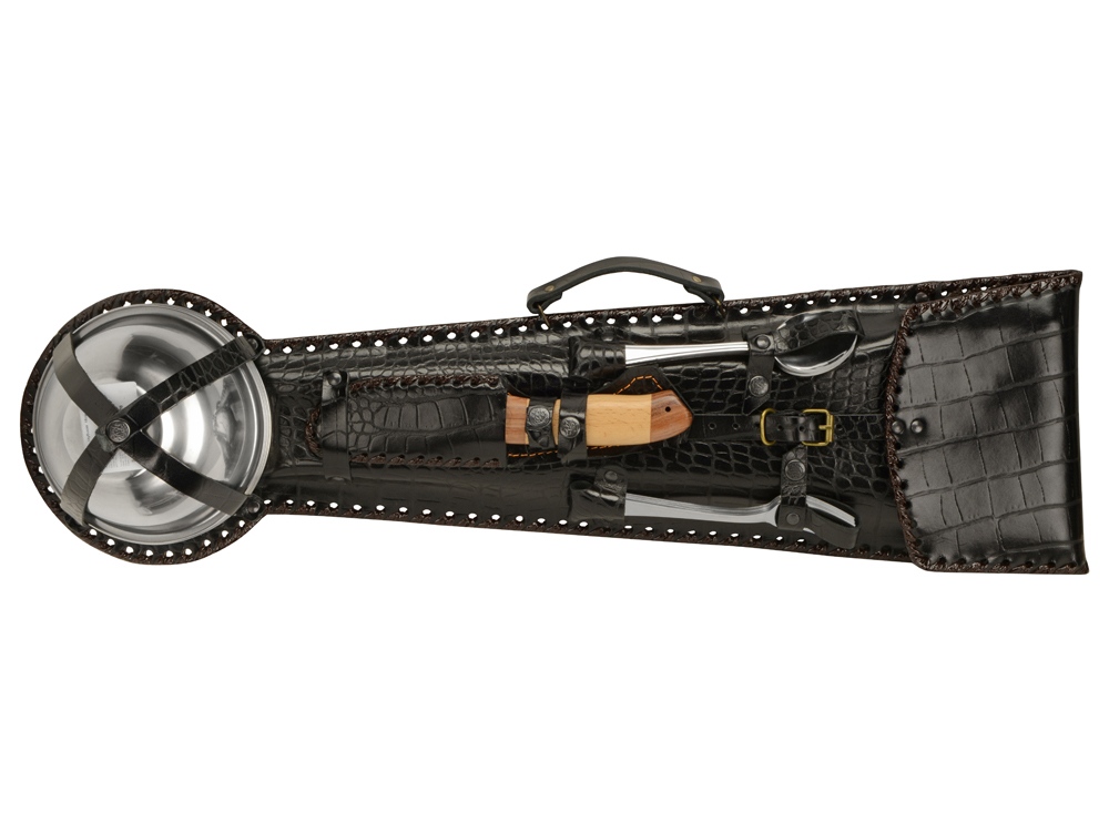 Набор для пикника в кожаном чехле ручной работы. В комплект входит: Тарелка 500 мл d16 х 7 см - 6шт Стопка d5,2 х 6 см - 6шт Нож 26 х 4 х 2,5 см - 1шт Ложка 19,3 х 4,5 х 3 см - 6шт Вилка 19,3 х 2,5 х 2 см - 6шт Топор 39,5 х 14,5 х 3,2 см - 1шт Ножки для мангала 50,5 х 31 х 1 см - 2шт Шампур d2,2 х 66 см - 6шт