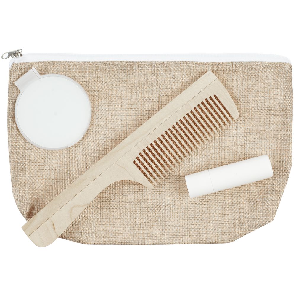 Материал помада, зеркало - пластик; расческа - дерево; косметичка - полиэстер