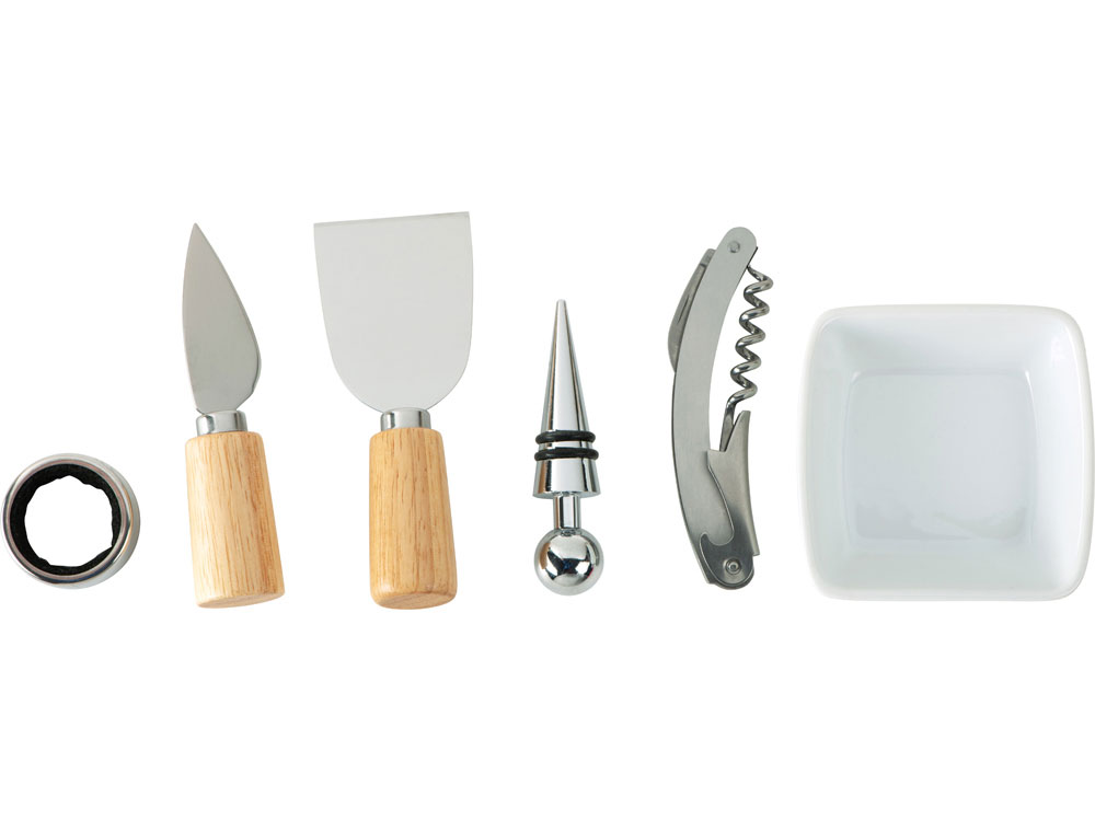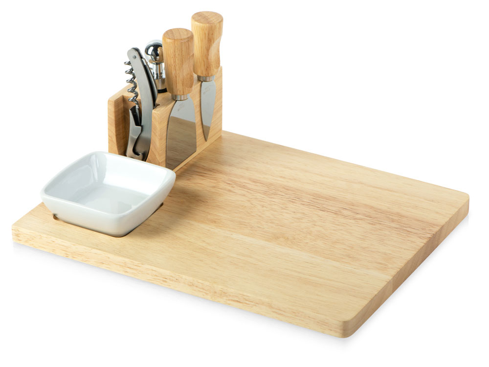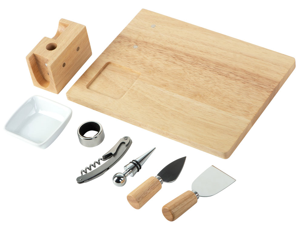 | Комплектность | разделочная доска / доска для подачи закусок, соусница / емкость для оливок , штопор, пробка для вина, кольцо для винной бутылки, два сырных ножа |