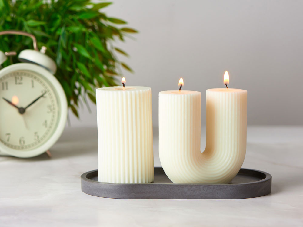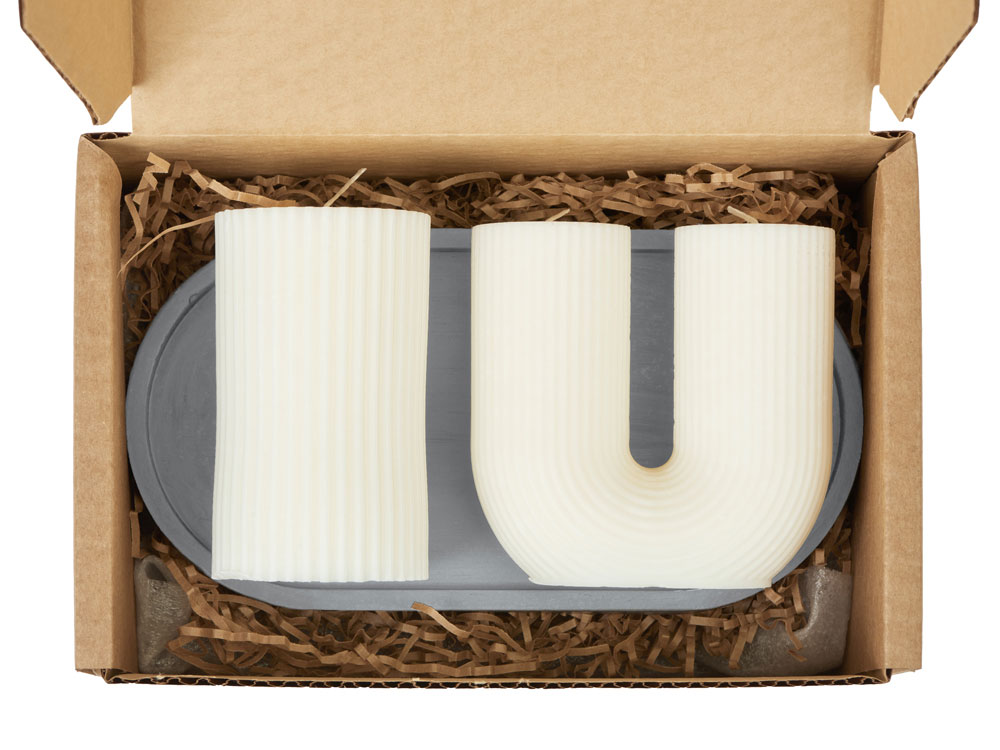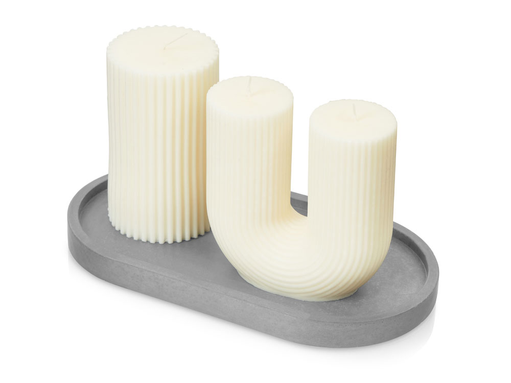 Этот набор из двух ароматических свечей разной формы создан специально для любителей выразительной геометрии в интерьере. Их дизайн и молочный оттенок в сочетании с графитово-серой подставкой из гипсобетона органично дополнит такие стили как хай-тек, лофт, минимализм, эко или скандинавский. А аромат дымного уда создаст укутывающую атмосферу спокойствия и уюта. Свечи на 80% изготовлены из натуральных соевого и кокосового воска, не токсичны при горении и не вредны для дыхания. После того как свечи прогорят, подставку можно использовать для пало санто или других благовоний, а также для хранения различных мелочей или ювелирных украшений. - Минималистичный дизайн - Многофункциональная подставка из гипсобетона - Экосостав - Ручная работа