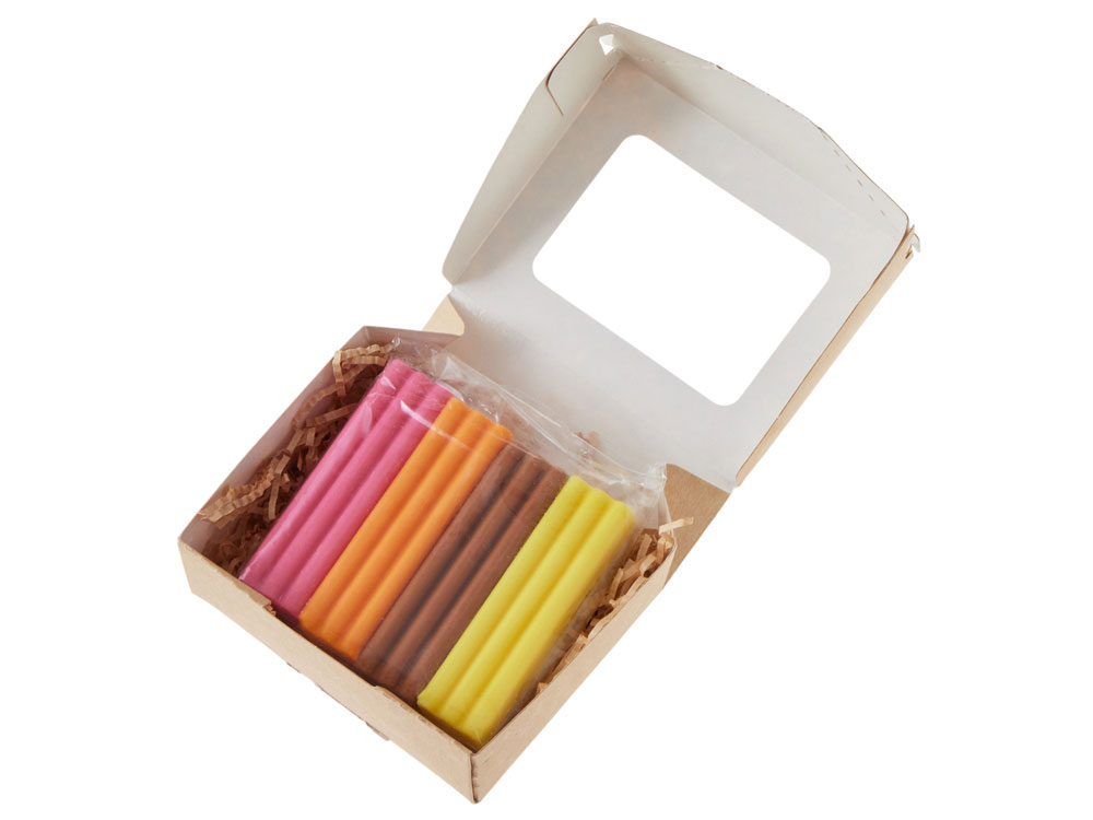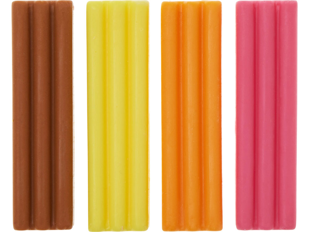 Яркие и необычные конфеты в форме, напоминающей пластилин, создают праздничное настроение и радуют глаз. Изготовлены из качественных ингредиентов. В каждом наборе — 4 ярких вкуса: банан, апельсин, малина и солёная карамель! Состав: сахар, какао масло, какао порошок, тёртое какао, миндаль, ароматизаторы (Ванилин, Шоколад), пищевой краситель, эмульгаторы (лецитин соевый Е 322, Е476). Может содержать следы молочных продуктов, фундука, арахиса.