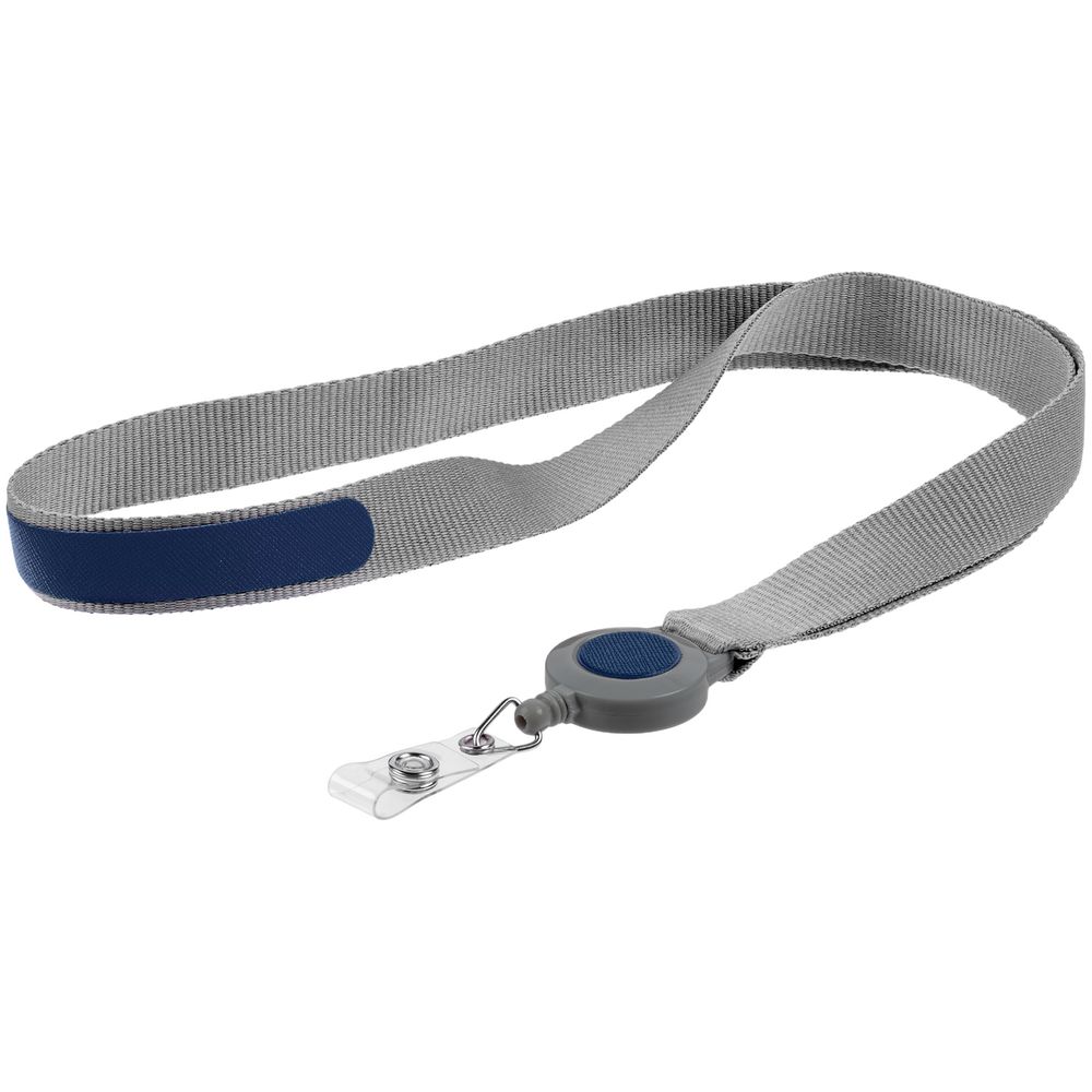 • Лента для бейджа с ретрактором Devon, серая с синим
