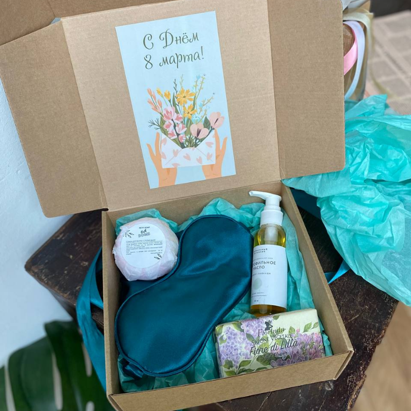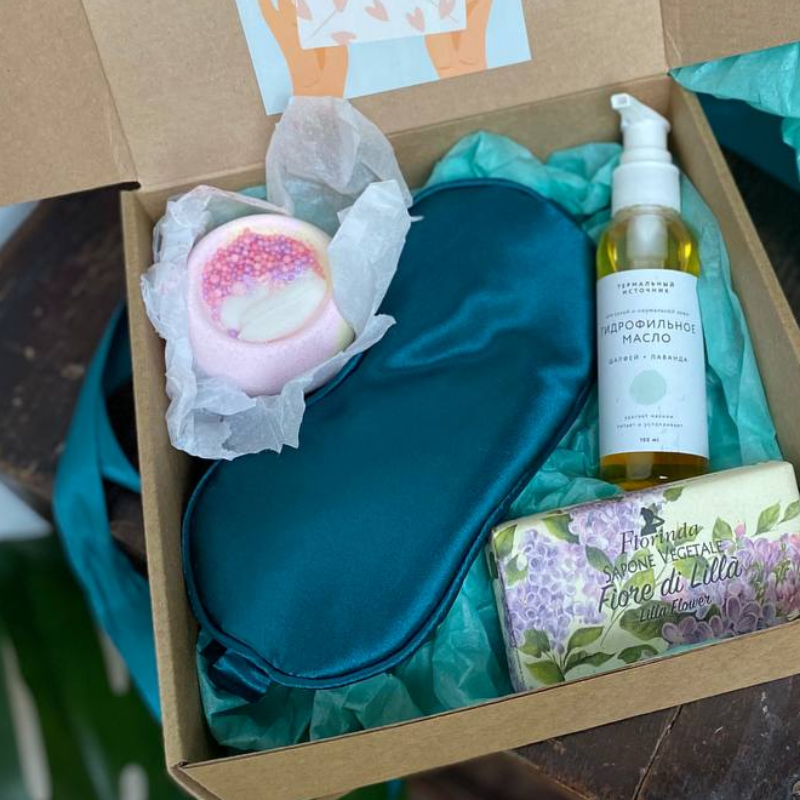 | Состав | гидрофильное масло, маска для сна, итальянское мыло Florinda, бомбочка для ванны |