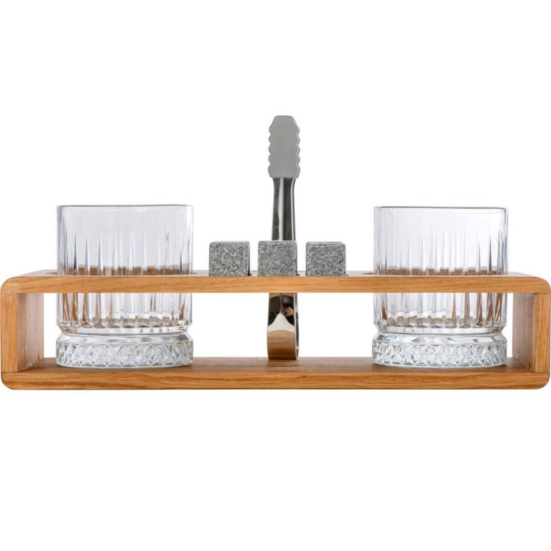 | Комплектность | деревянная подставка 28 х 11,6 х 5,7 см, бокал 210 мл- 2 шт, камень для виски 2 х 2 см- 6 шт, щипцы, упаковочная коробка |