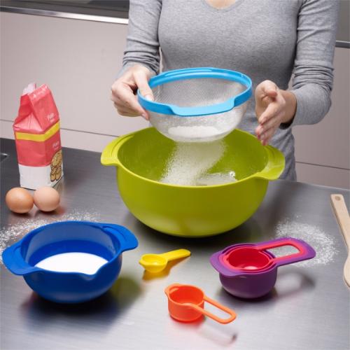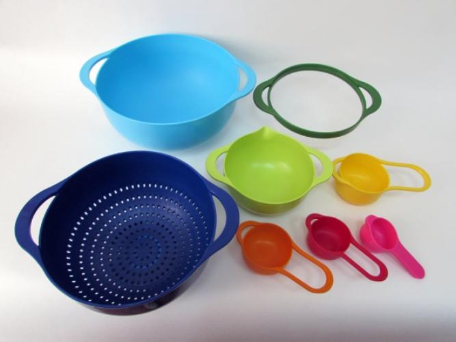 | В комплекте 8 мисок | 60мл, 80мл, 125мл, 250мл, 500мл с мерным делением, сито 1,65л, дуршлаг 3л, с нескользящим дном 4,5л |