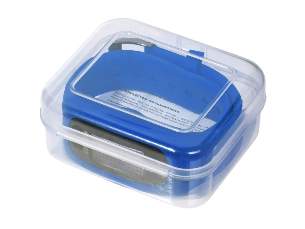 Наручные часы с возможностью отображения времени, калорий, шагов и дистанции. Есть переключение между метрической и британской системами измерений. На силиконовом ремешке можно сделать гравировку. Часы упакованы в пластиковую коробку, которую можно использовать для нанесения. Батарейка в комплекте.