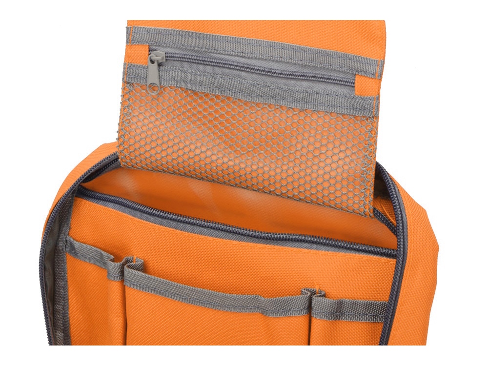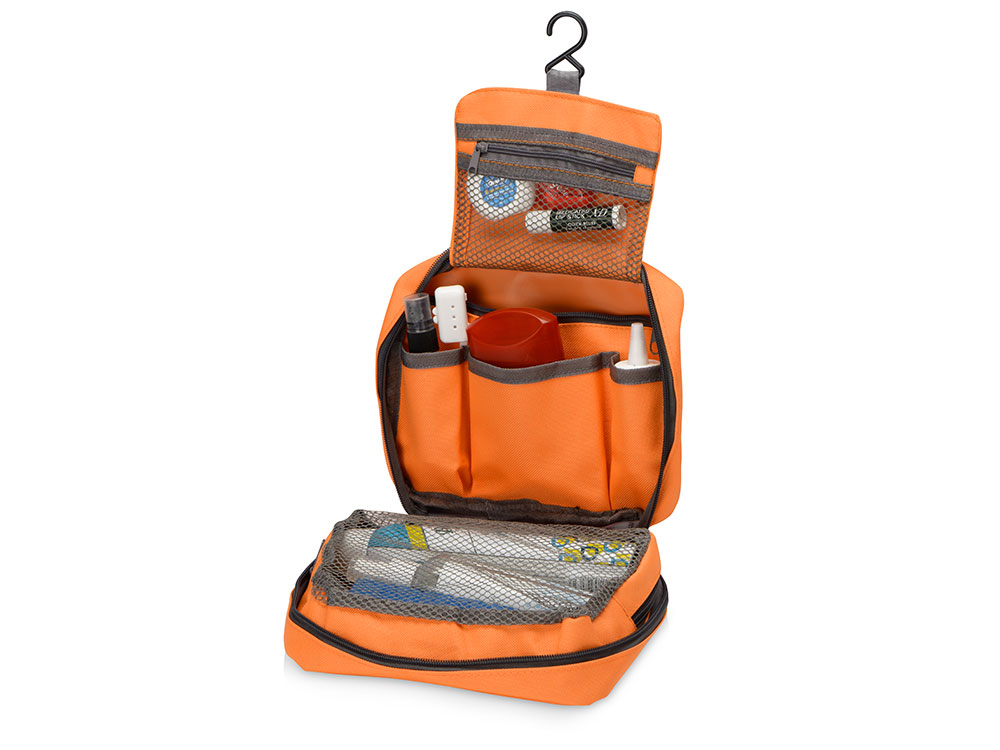 Несессер для путешествий – неотъемлемый атрибут комфортных поездок, служащий для компактного хранения различных мелочей. Аксессуар также пригодится для походов в спортзал и просто поддержания порядка дома. Это превосходный подарок любителю путешествий, а также отличный вариант промо-презента для рекламных кампаний. Большая поверхность позволяет нанести логотип или слоган фирмы. • Вместительное пространство с двумя большими отделениями и несколькими карманами дает возможность эргономично распределить весь дорожный арсенал косметических и туалетных принадлежностей. • Крючок позволяет подвесить аксессуар, например, в уборной поезда или гостиничном номере, в случае отсутствия полки. • Оптимальные размеры, не превышающие формат А4, позволяют легко разместить несессер в любом чемодане или дорожной сумке.