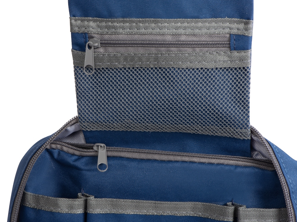 Несессер для путешествий – неотъемлемый атрибут комфортных поездок, служащий для компактного хранения различных мелочей. Аксессуар также пригодится для походов в спортзал и просто поддержания порядка дома. Это превосходный подарок любителю путешествий, а также отличный вариант промо-презента для рекламных кампаний. Большая поверхность позволяет нанести логотип или слоган фирмы. • Вместительное пространство с двумя большими отделениями и несколькими карманами дает возможность эргономично распределить весь дорожный арсенал косметических и туалетных принадлежностей. • Крючок позволяет подвесить аксессуар, например, в уборной поезда или гостиничном номере, в случае отсутствия полки. • Оптимальные размеры, не превышающие формат А4, позволяют легко разместить несессер в любом чемодане или дорожной сумке.