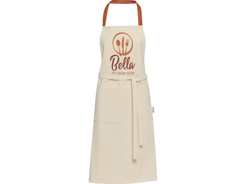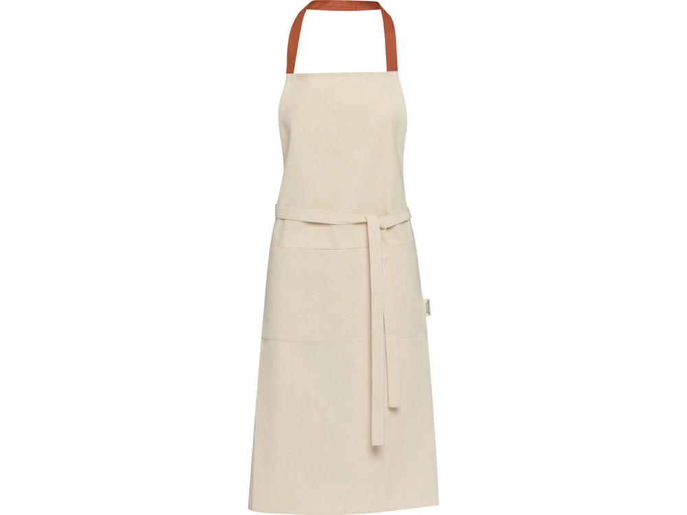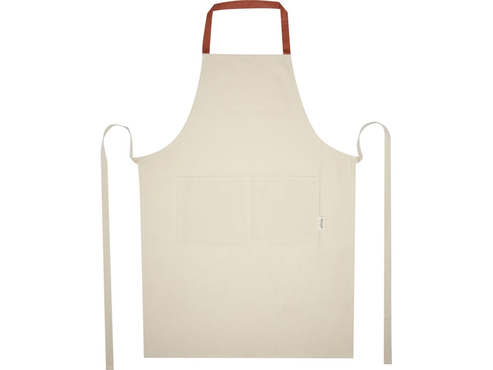 Фартук Nia изготовлен из 100% сертифицированного GRS переработанного хлопка плотностью 200 г/м². Этот фартук из натурального хлопка с контрастной петлей на шее защитит вашу одежду во время приготовления пищи. Фартук Nia с двумя соседними карманами общим размером 45 x 20 см и завязками длиной 1 метр обеспечивает обеспечивает практичность и стиль на вашей кухни. GRS certified recycled cotton, 210 g/m2.