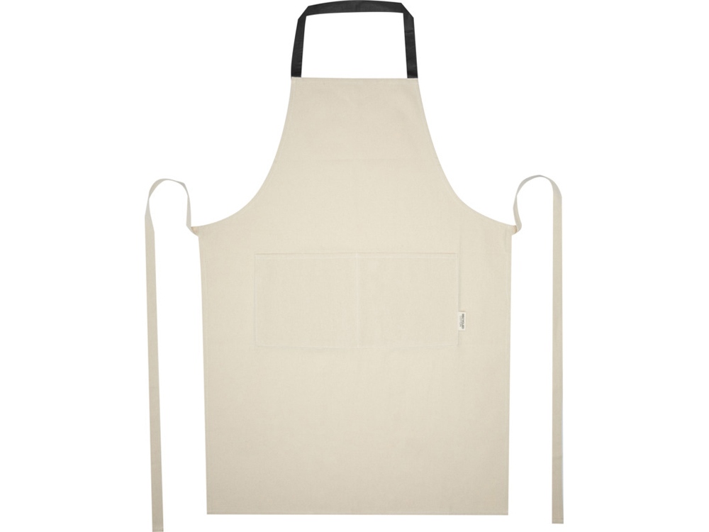 Фартук Nia изготовлен из 100% сертифицированного GRS переработанного хлопка плотностью 200 г/м². Этот фартук из натурального хлопка с контрастной петлей на шее защитит вашу одежду во время приготовления пищи. Фартук Nia с двумя соседними карманами общим размером 45 x 20 см и завязками длиной 1 метр обеспечивает обеспечивает практичность и стиль на вашей кухни. GRS certified recycled cotton, 210 g/m2.