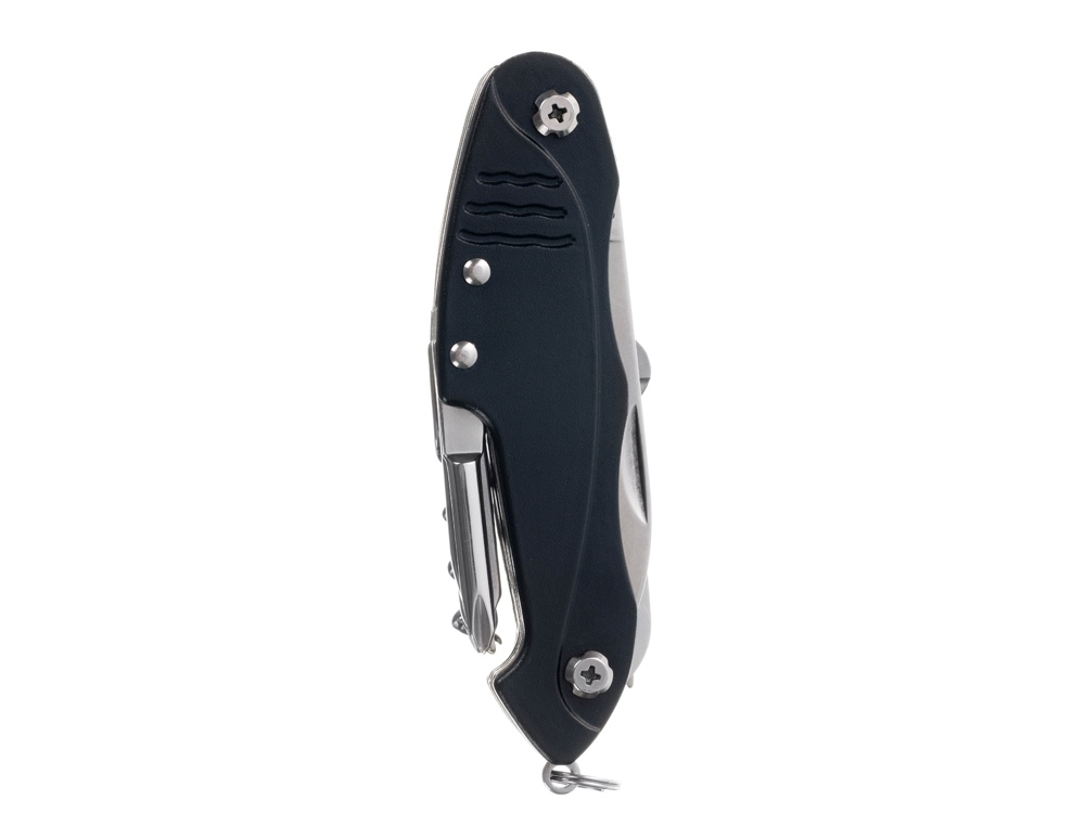Нож перочинный STINGER имеет 15 функций: 1. Большое лезвие 2. Пила по дереву 3. Инструмент для чистки рыбы с: 4. - Инструментом для извлечения рыболовного крючка 5. Ножницы 6. Консервный нож 7. Открывалка для бутылок с: 8. - Отверткой 9. Крестовая отвертка 10. Ледокол 11. Пилка для ногтей с: 12. - Инструментом по уходу за ногтями 13. Игла 14. Штопор 15. Кольцо для ключей Материалы • лезвие/инструменты: нержавеющая сталь 420, твердость 44-48 HRC • рукоять: нержавеющая сталь 420, твердость 44-48 HRC • накладки рукояти: алюминий Размеры • Размеры ножа: 96х28х19 мм • Общая длина: 158,8 мм • Длина клинка: 62,7 мм • Наибольшая ширина клинка: 12 мм • Толщина обуха: 1,7 мм • Длина рукояти: 96,1 мм • Ширина рукояти (в ср.части): 24,4 мм • Толщина рукояти (в ср.части): 15,4 мм Вес: 108 г Цвет накладок рукояти: черный Накладки рукояти ножа не подлежат замене. Упаковка: картонная коробка