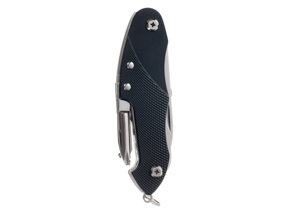 Нож перочинный STINGER имеет 15 функций: 1. Большое лезвие 2. Пила по дереву 3. Инструмент для чистки рыбы с: 4. - Инструментом для извлечения рыболовного крючка 5. Ножницы 6. Консервный нож 7. Открывалка для бутылок с: 8. - Отверткой 9. Крестовая отвертка 10. Ледокол 11. Пилка для ногтей с: 12. - Инструментом по уходу за ногтями 13. Игла 14. Штопор 15. Кольцо для ключей Материалы • лезвие/инструменты: нержавеющая сталь 420, твердость 44-48 HRC • рукоять: нержавеющая сталь 420, твердость 44-48 HRC • накладки рукояти: алюминий Размеры • Размеры ножа: 96х28х19 мм • Общая длина: 158,8 мм • Длина клинка: 62,5 мм • Наибольшая ширина клинка: 12 мм • Толщина обуха: 1,7 мм • Длина рукояти: 96,3 мм • Ширина рукояти (в ср.части): 24,5 мм • Толщина рукояти (в ср.части): 15 мм Вес: 105 г Цвет накладок рукояти: черный Накладки рукояти ножа не подлежат замене. Упаковка: картонная коробка