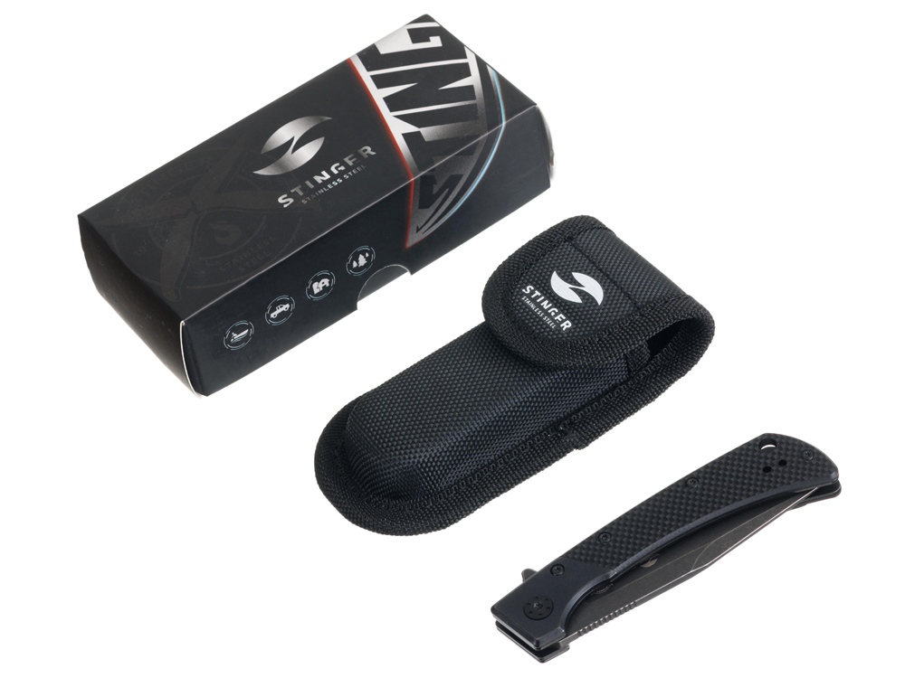 НОЖ СКЛАДНОЙ STINGER Компактный складной нож с понятной конструкцией, выполнен из высококачественных материалов. Модель прекрасно подойдет для EDC. Рукоять ножа изготовлена из нержавеющей стали с накладками из стеклотекстолита G10 - композитного материала на основе стеклоткани и эпоксидной смолы. G10 является прочным и ударостойким материалом, отлично переносит влагу, отличается повышенной стойкостью к огню. Рукоять ножа собрана на втулках - бонках, поэтому при необходимости его можно легко промыть. На рукояти расположена съемная клипса для удобного размещения ножа в кармане. Клипсу можно установить под левую или правую руку. Нож открывается при помощи флиппера, который может дополнительно выполнять роль гарды, предотвращая соскальзывание руки на лезвие клинка. На верхней части лезвия расположен подпальцевый упор с насечкой для более комфортной работы. Клинок изготовлен из нержавеющей стали 8CR14MoV. Основное преимущество этой стали - отличное противодействие коррозии благодаря высокому содержанию хрома (14,5%). Сталь 8CR14MoV относится к высокоуглеродистым сталям (0,8%), углерод в составе придает сплаву твердость в диапазоне 57-59 HRC, что позволяет режущей кромке лезвия длительное время оставаться острой. Оптимальное содержание легирующих элементов придает стали гибкость, лезвие хорошо поддается правке и заточке. Клинок из стали 8CR14MoV отличается высокой прочностью и устойчивостью к износу, имеет долгий срок службы, обеспечивает качественный и точный срез. Характеристики: Материал клинка: нержавеющая сталь 8CR14MoV Твердость по шкале Роквелла: 57-59 HRC Материал рукояти: нержавеющая сталь/стеклотекстолит G10 Метод открывания клинка: флиппер Фиксатор клинка: Liner Lock Длина ножа: 180 мм Длина клинка: 78 мм Толщина клинка: 3 мм Вес: 85 г Цвет рукояти: черный Особенности: рукоять с клипом и отверстием под темляк В комплекте: нейлоновый чехол