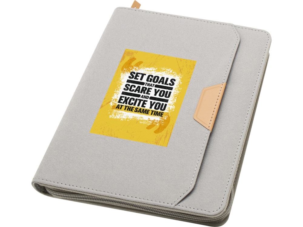 Папка Nomumi формата А5 с закругленными углами — удобный и необходимый предмет в офисе, изготовленный из переработанного пластика. Содержит 64 листа кремового цвета плотностью 80 г/м2, застежку-молнию, петлю для ручки и карман-гармошку. Переработанный PET пластик, бумага.