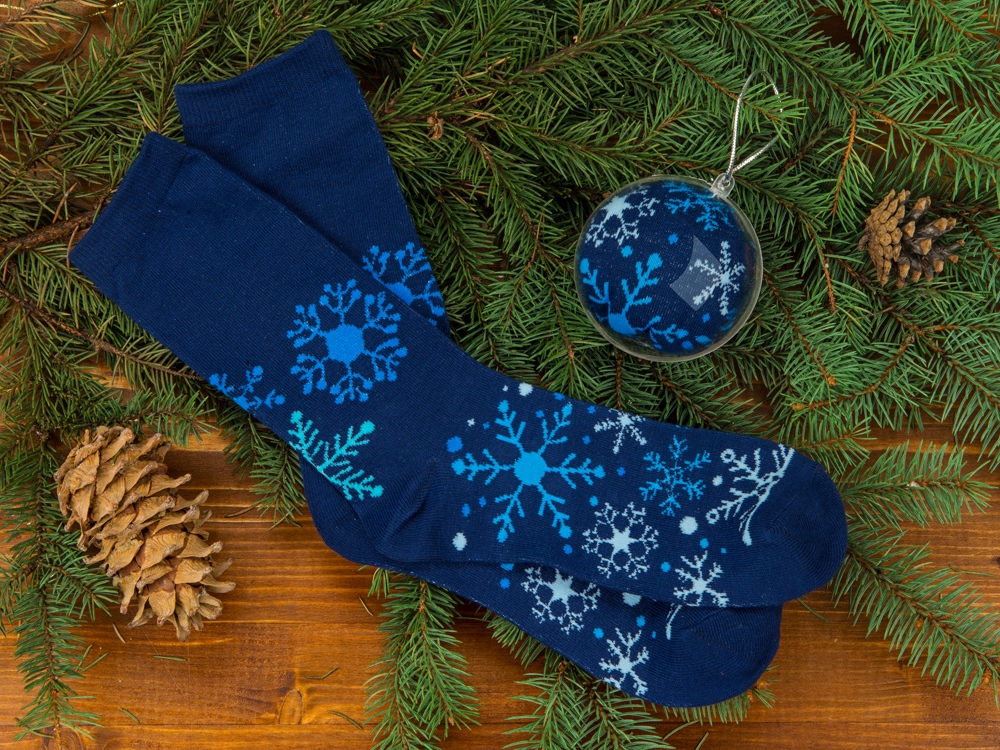 Носки в шарике – новинка нашего каталога новогодних подарков. Стильный рождественский принт в виде снежинок и оригинальная упаковка в форме пластикового шара - делают подарок многофункциональным. Возможны различные варианты преподнесения? Предлагаем вам самый простой: Повесьте подарок на елку, но только не на видное место, а чуть дальше вглубь новогоднего дерева. Составьте карту и как можно подробнее опишите игрушки висящие рядом. Дальше вручаете карту вместе с открыткой и поздравлением, а подарок счастливый получатель разыскивает самостоятельно. Это всего лишь один из оригинальных способов разнообразить традиционное новогоднее застолье. Размер 25-28 см