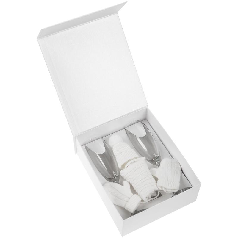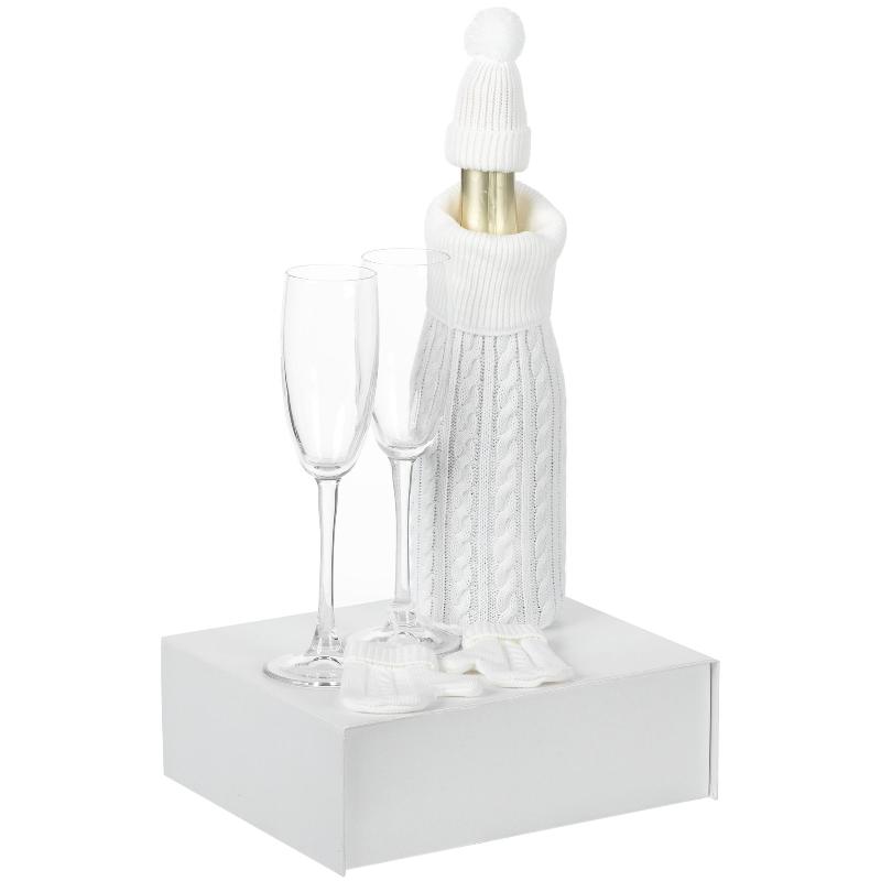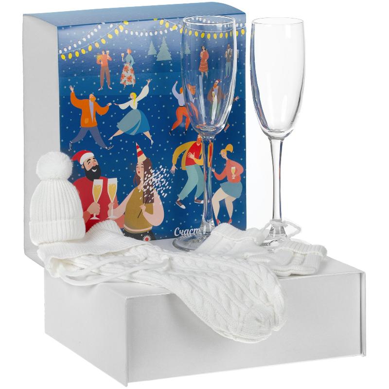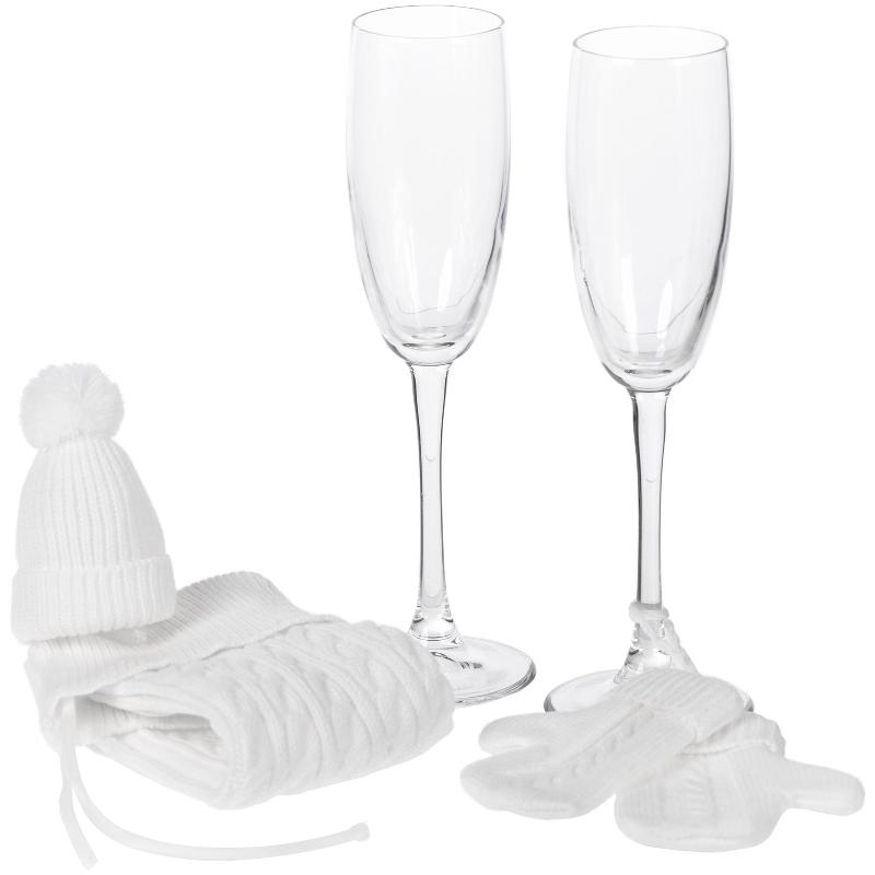 | В наборе | 2 бокала, колпачок на бутылку, чехол на бутылку, игрушка на елку (рукавички), подарочная коробка |