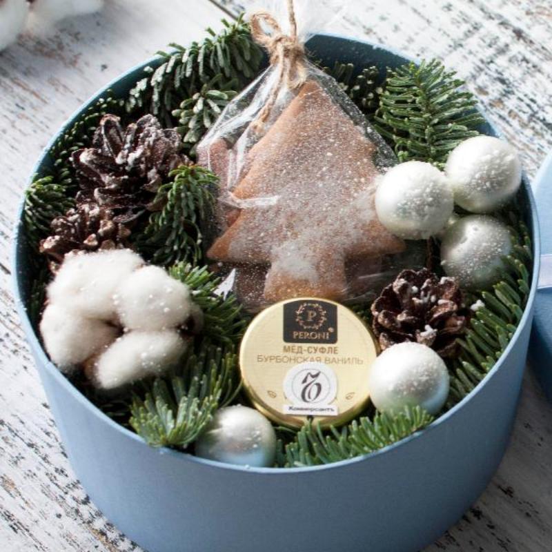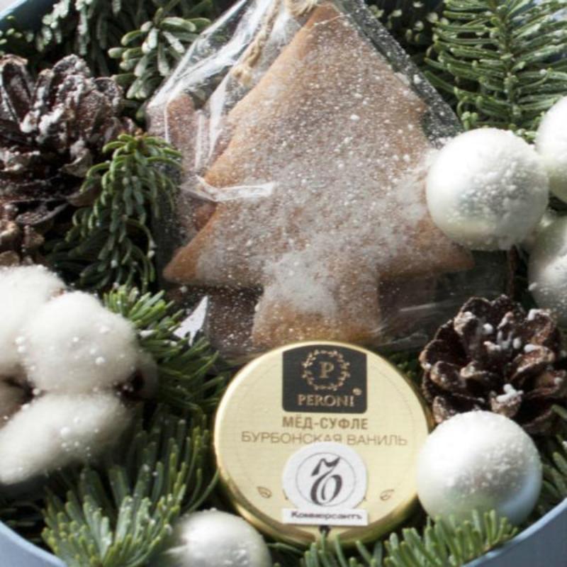 | Состав | мед-суфле, шишки, имбирные пряники, шарики, хлопок. |