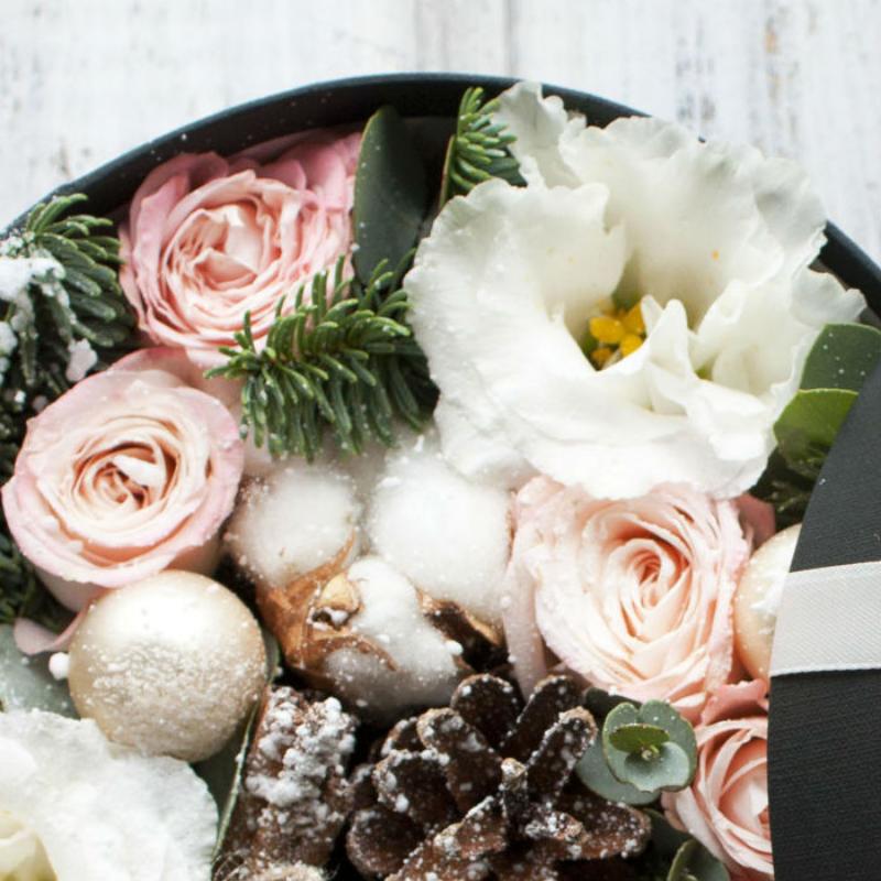 | Состав | мед-суфле, кустовая роза, эустома, шишки, эвкалипт, шарики, хлопок, открытка. |