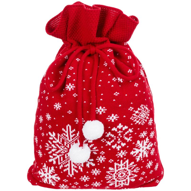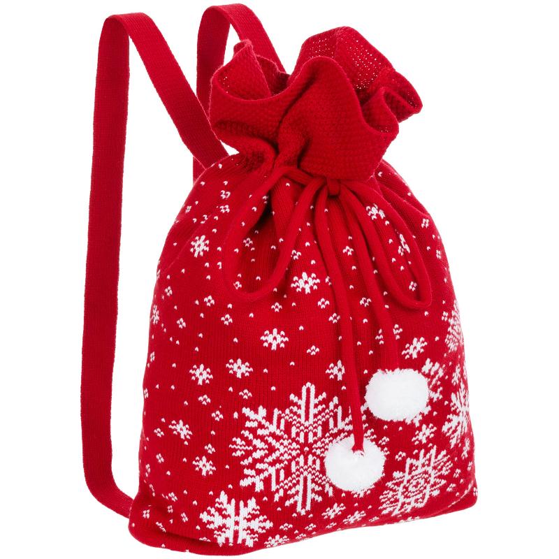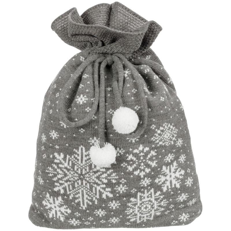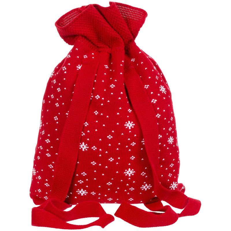 • Вязаная сумка со снежным орнаментом подойдет как для упаковки новогодних подарков, так и для использования в качестве рюкзака