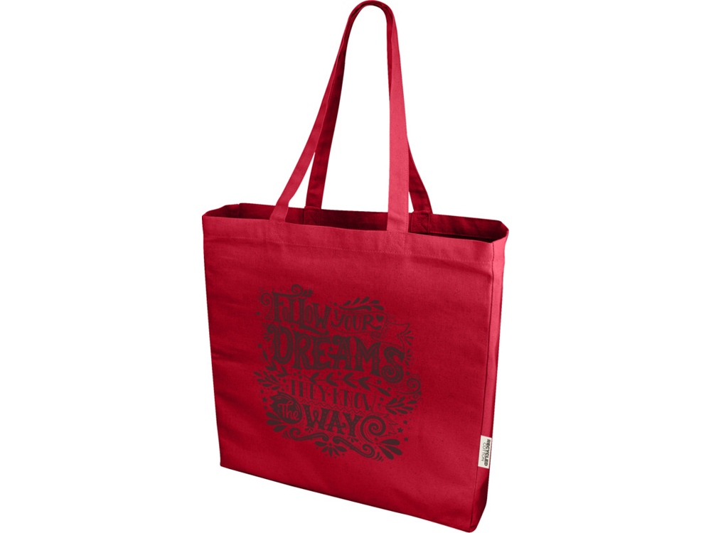 Эко-сумка Odessa, изготовленная из 100% переработанного хлопка, сертифицированного по стандарту GRS, создана для удобного ношения благодаря ручкам на плечо длиной 30 см и большому основному отделению с клинчиком. Независимо от того, хотите ли вы носить с собой тяжелые книги или продукты, эта сумка предназначена для удовлетворения любых потребностей. Методы печати, доступные для этой эко-сумки, также сертифицированы по стандарту GRS, что гарантирует прозрачность и сертификацию всей цепочки поставок. Хлопок плотностью 220 г/м² обеспечивает долговечность и надежность и позволяет переносить вес до 10 кг. Сделано в Индии. Recycled cotton, 220 g/m2.