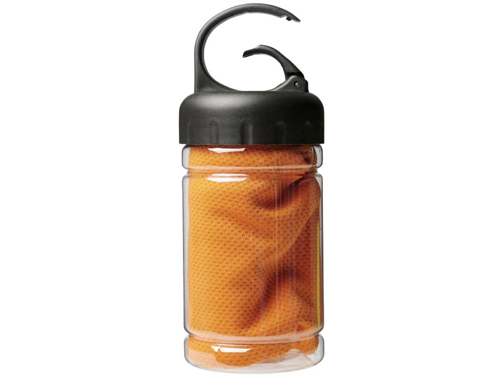 Охлаждающее полотенце Remy в ПЭТ-контейнере. Быстро впитывающее, быстро сохнущее и стираемое охлаждающее полотенце сохраняет прохладу во время тренировок или любых других занятий на свежем воздухе. Поставляется в ПЭТ-контейнере с ручкой и встроенным карабином для удобной переноски. Доступно в 5 ярких цветах. На контейнере изображен большой логотип, он также может быть и на самом охлаждающем полотенце. Размер: 30 x 80 см. PET. 0,096.