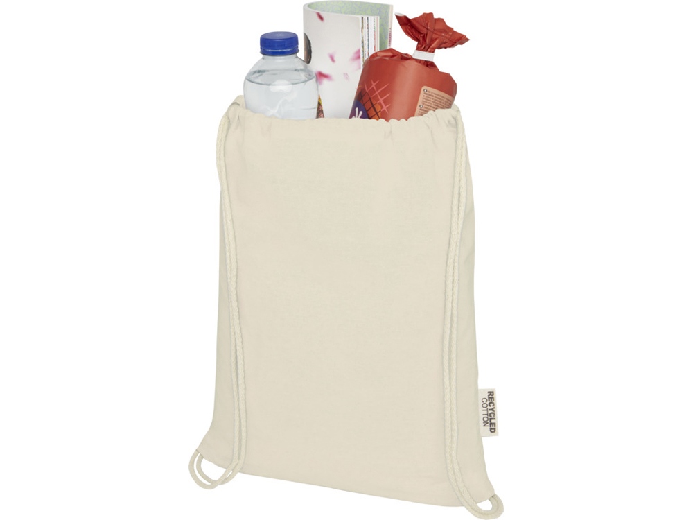 Сумку Oregon на шнурке, изготовленную из 100% переработанного хлопка, сертифицированного GRS, легко преподнести в качестве подарка для продвижения вашего бренда или маркетинговой кампании. Эта легкая сумка недорога, ее легко носить на спине или на плече, и в ней достаточно места для размещения логотипа или других надписей. Шнурок позволяет легко открывать и закрывать сумку, а хлопковый материал плотностью 140 г/м² прочный и долговечный. Большое основное отделение затягивается хлопковым шнурком. Выдерживает вес до 5 кг. GRS certified recycled cotton, 140 g/m2.