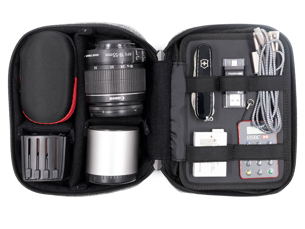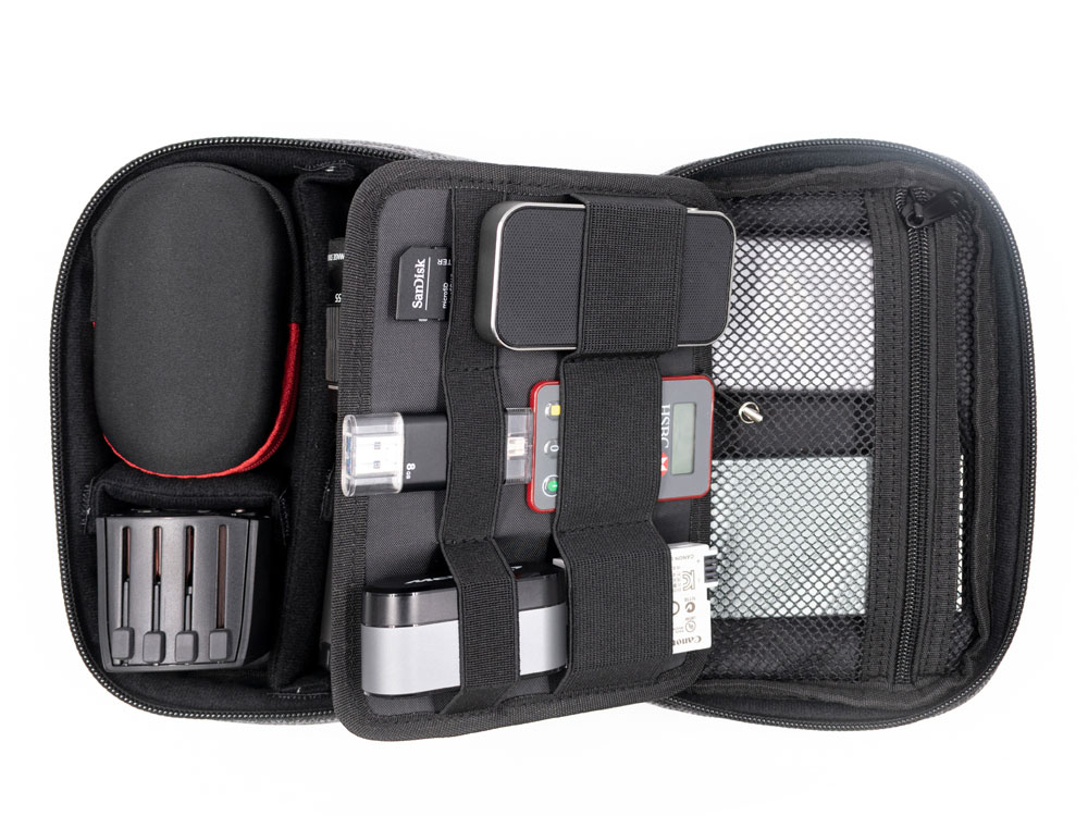 Водоотталкивающая и стойкая к пятнам ткань. Можно менять конфигурацию хранения внутри благодаря разделителям на липучках. Комплектуется 2мя съемными шильдами под нанесение вашего логотипа - металлическим и из эко кожи. - 11 эластичных лент для хранения проводов - 1 сетчатый карман на молнии для мелких предметов типа сим карт - Наружный карман на молнии - Утолщенные стенки для идеальной сохранности