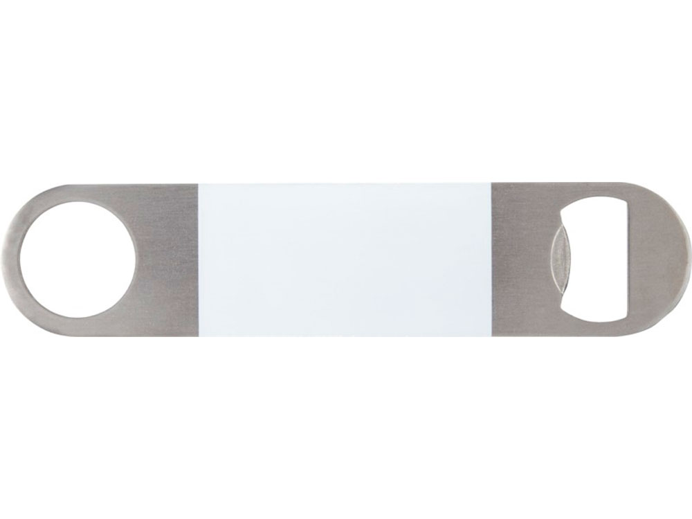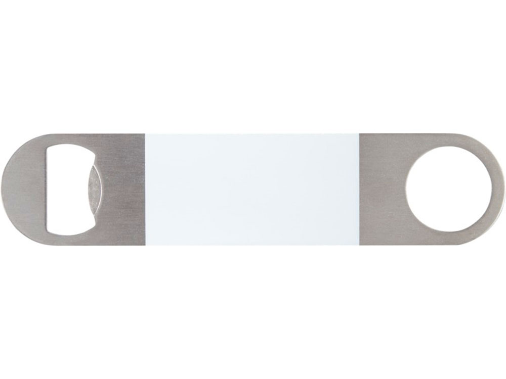 Открывалка для бутылок из нержавеющей стали с большой цветной областью в центре.