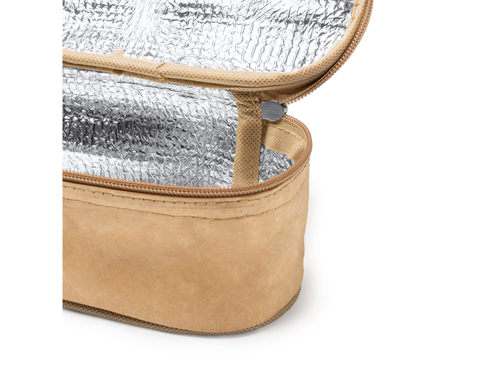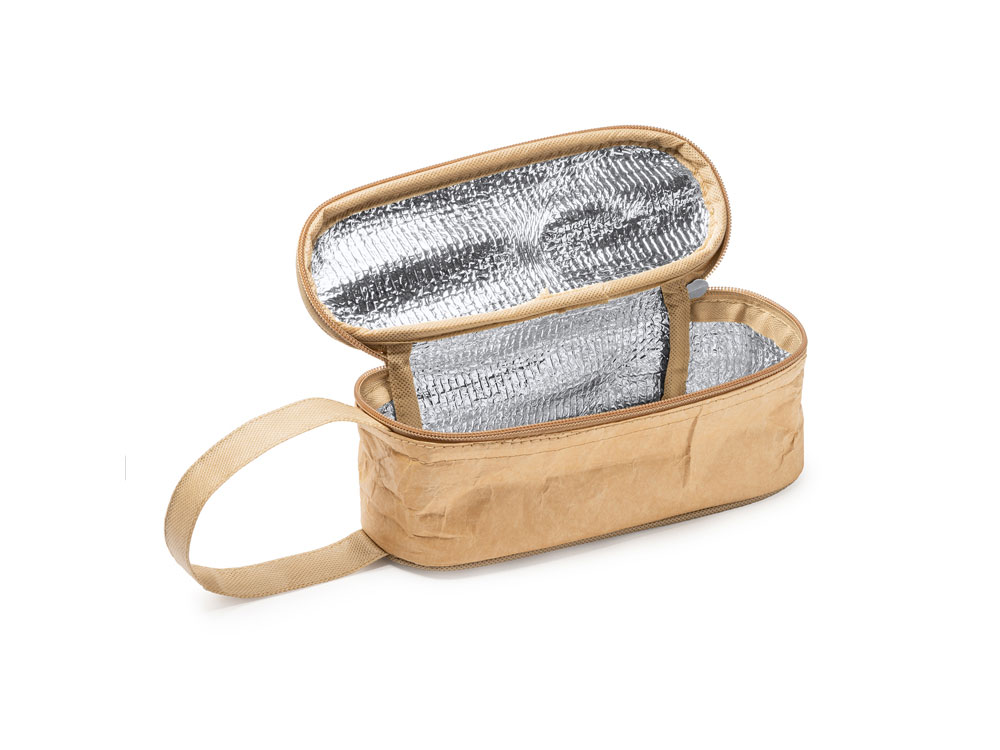 Пакет для сэндвичей из прочной ламинированной бумаги с застежкой-молнией. Алюминиевая изотермическая внутренняя подкладка для сохранения температуры. Практичная ручка для переноски в комплекте.