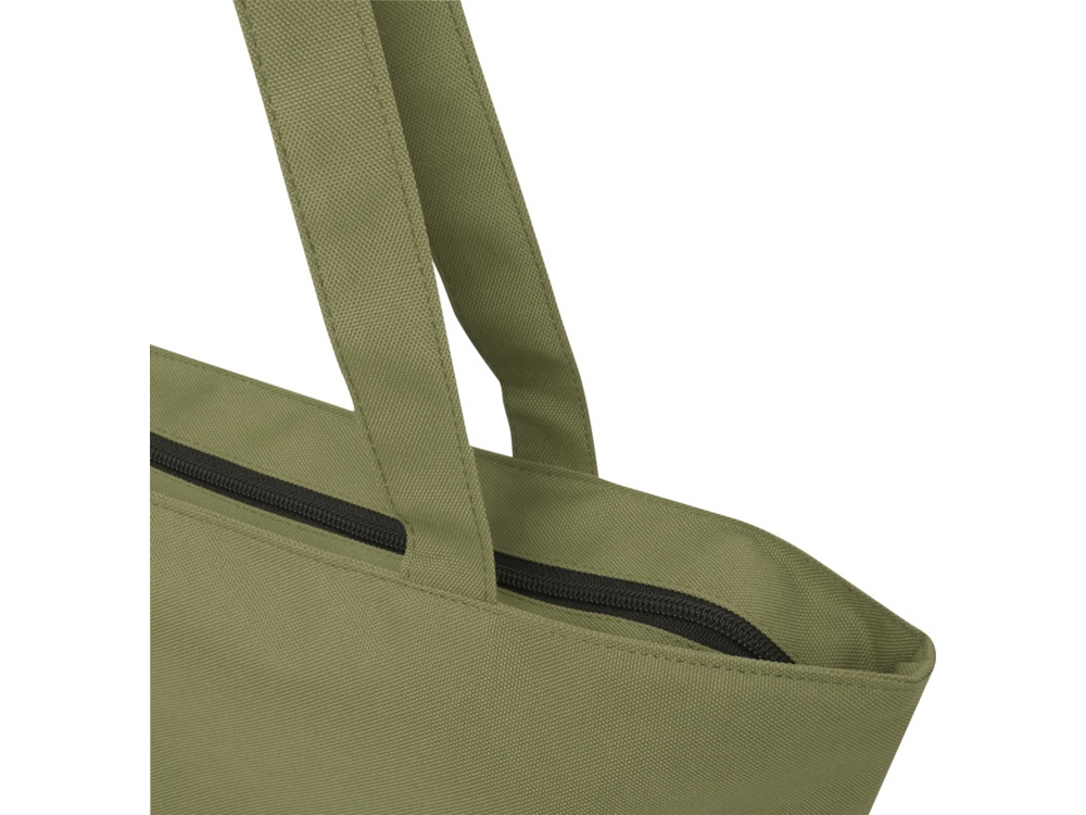 Изготовленная из водоотталкивающего переработанного PET-пластика 600D, эко-сумка на молнии Panama из переработанных материалов, сертифицированных GRS, является идеальной и экологичной многофункциональной сумкой для похода на мероприятие, на пляж или в магазин за продуктами. У изделия имеется основное отделение на молнии и внутренний карман на молнии, достаточно большой, чтобы вместить телефон и другие ценные вещи. Ручки длиной 34 см позволяют легко носить эко-сумку через плечо. Прочность до 10 кг. Не содержит ПВХ. 600DGRS certified recycled polyester.