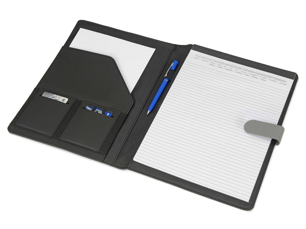 Стильная папка для документов из текстиля с магнитной застежкой. Папка формата А4 с блокнотом, держателем для ручки, удобными карманами для телефона и визиток. Современный лаконичный дизайн органично сочетается с любым логотип.