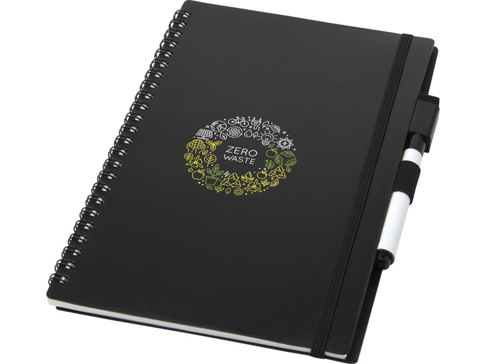 Эко-блокнот — на его производство используется меньше бумаги, что является заботой об окружающей среде. Заметки, рисунки или результаты мозгового штурма на страницах можно стереть с помощью ластика на маркере и снова использовать страницы. Их также можно чистить обычной тканью (не входит в комплект). 40 листов: половина с пунктирной разметкой, вторая половина — пустые. Черный маркер для записей.