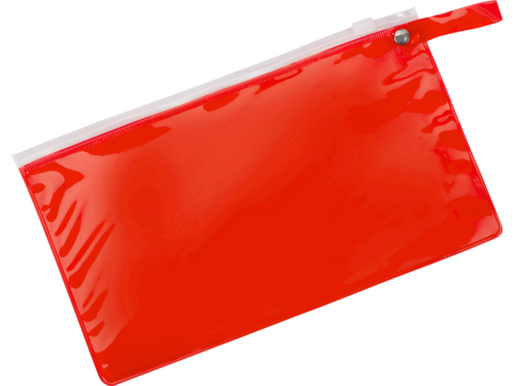 Яркий пенал из ПВХ закрывается на zip-замок. На этот пенал можно нанести название компании и вложить в него несколько сувениров небольшого размера.