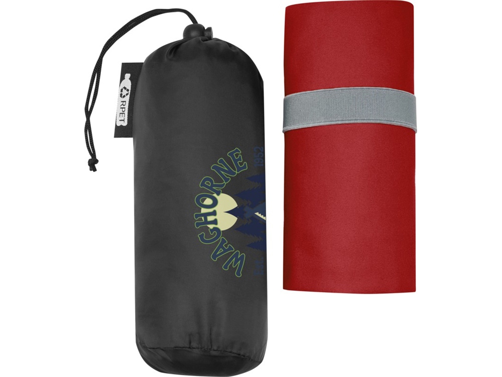 Это спортивное полотенце очень хорошо впитывает влагу, легкое, быстро сохнет. Кроме того, ткань прочная и чрезвычайно мягкая. Когда полотенце сложено и закреплено резинкой, оно уменьшается до небольшого размера, поэтому его удобно брать с собой в тренажерный зал, бассейн, на пешую прогулку или в поход. Полотенце имеет размер 130 x 80 см и изготовлено из переработанного РЕТ-полиамида плотностью 200 г/м2, его можно стирать в стиральной машине при 40 °C. Поставляется с сумкой для хранения (20 x 8,5 см) из переработанного РЕТ-пластика, на которой достаточно места для нанесения логотипа.