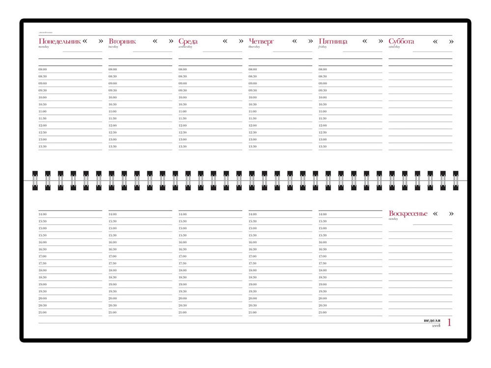 Обложка планинга Ideal New выполнена из итальянского классического, устойчивого к истиранию материала на бумажной основе. Недатированный. 128 страниц, размеры обложки: 305 х 130 мм, блока 295 х 100 мм. Белая высококачественная бумага 70 грамм. Печать в два цвета. Справочная информация занимает 15 страниц.