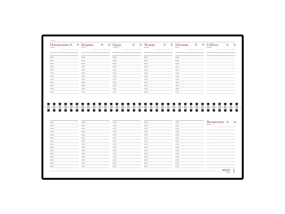 Обложка планинга Ideal New выполнена из итальянского классического, устойчивого к истиранию материала на бумажной основе. Недатированный. 128 страниц, размеры обложки: 305 х 130 мм, блока 295 х 100 мм. Белая высококачественная бумага 70 грамм. Печать в два цвета. Справочная информация занимает 15 страниц.