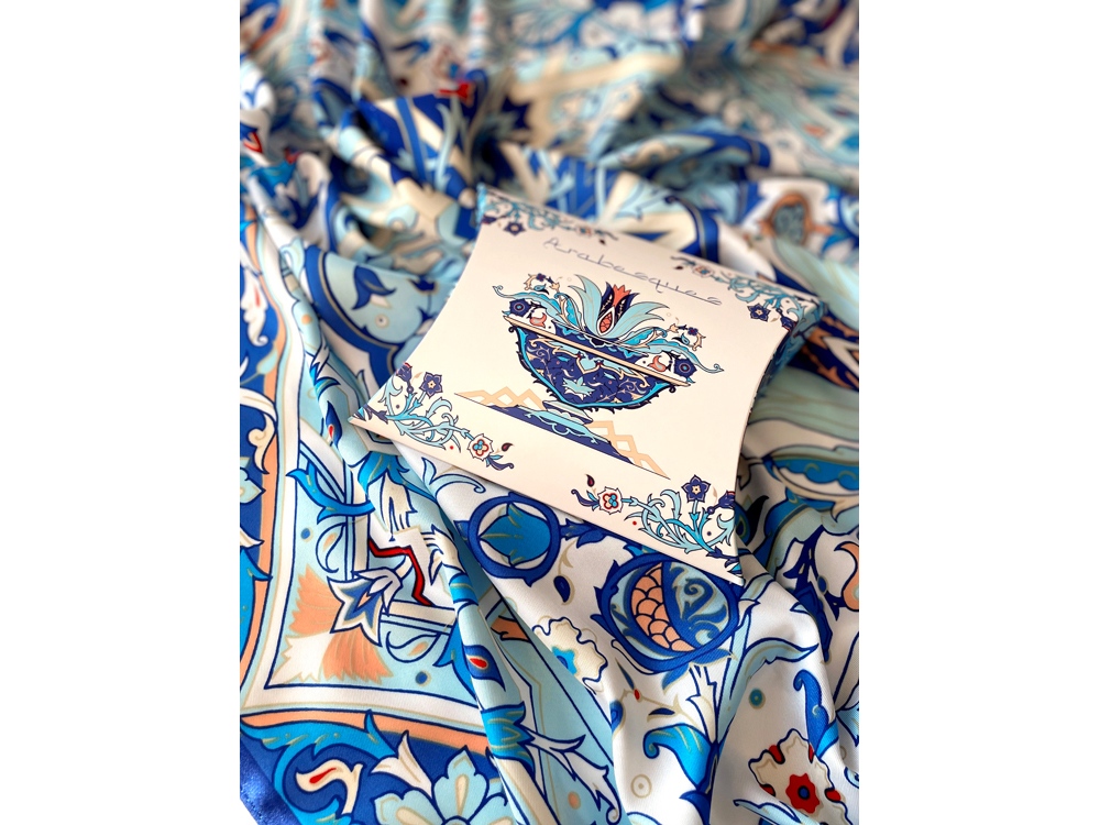 Арабески — это новая серия платков, на создание которых нас вдохновила величественная мусульманская архитектура. В восточных странах арабеской” называют узор, служащий связующим звеном между небом, как обителью Бога, и человеком. В основе его лежат повторения геометрических фигур, каллиграфических элементов и растительных мотивов, образующих сложную орнаментальную вязь. Бесконечный переход одного узора в другой с плотным заполнением пространства обычно сравнивают с завораживающей тканью Вселенной. Магия четко-выверенного и логически строгого узора украшает изящные шелковые платки Арабески”, оставляя ощущение загадки, восхищения и интригующей недосказанности. Смелые и в то же время кроткие аксессуары способны подарить новые образы, наделить их особой эстетикой и подчеркнуть природную красоту каждой женщины. Дизайнеры: Нина Ручкина, Мила Лосенко